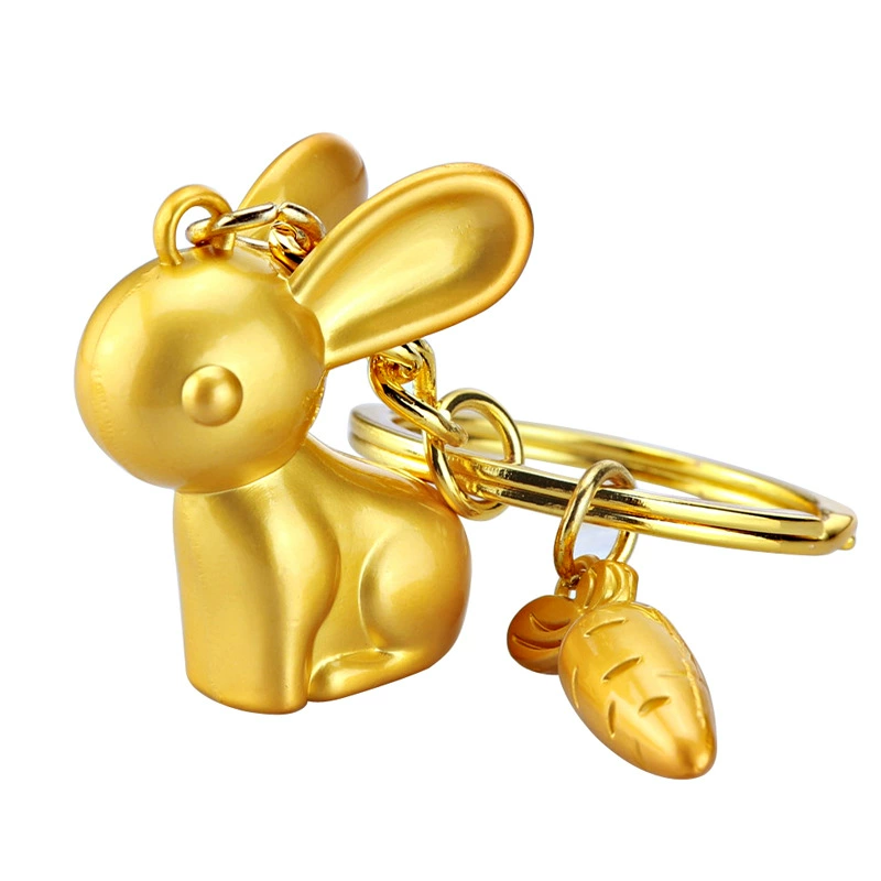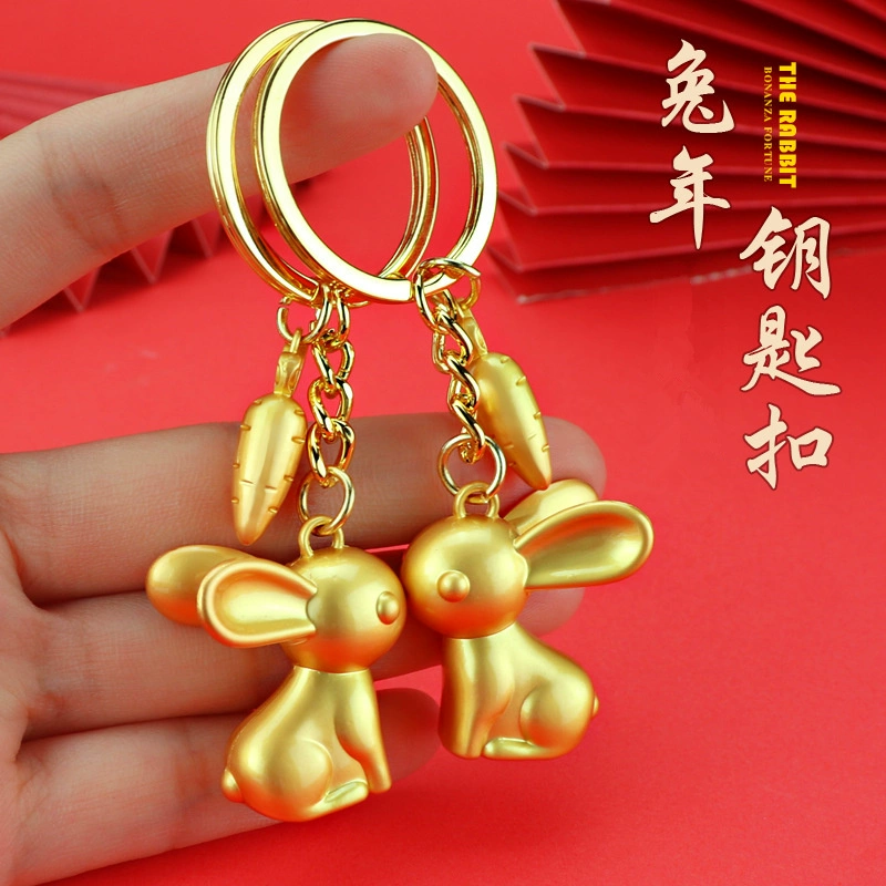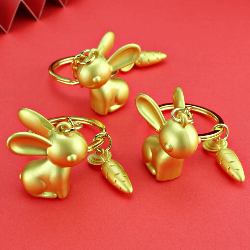2024 zodiac radish little golden rabbit mascot rich three-dimensional rabbit metal key chain ring small gift pendant