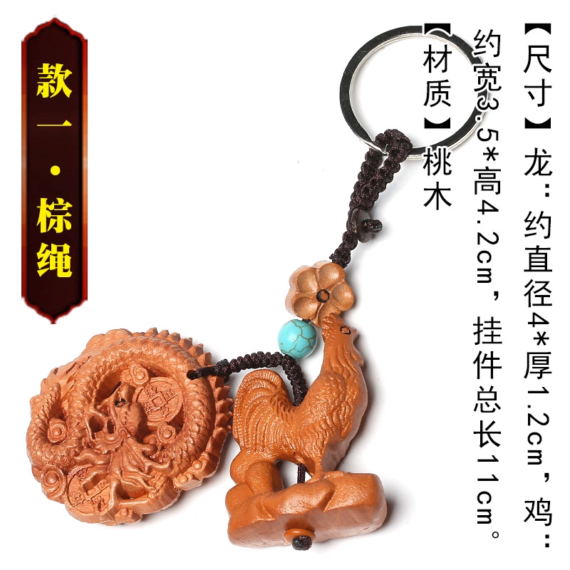 | nameOriginal | 2024 zodiac sign is dragon mascot dragon rooster and walnut wood emerald cinnabar car key chain pendant pendant |