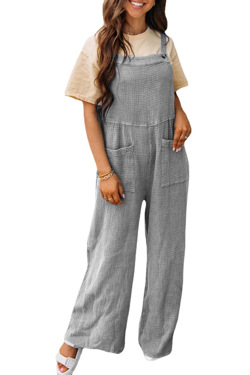 2024TEMU European and American Cross-border Summer New Women’s Casual Solid Color Pocket Square Collar Loose Strap Pants