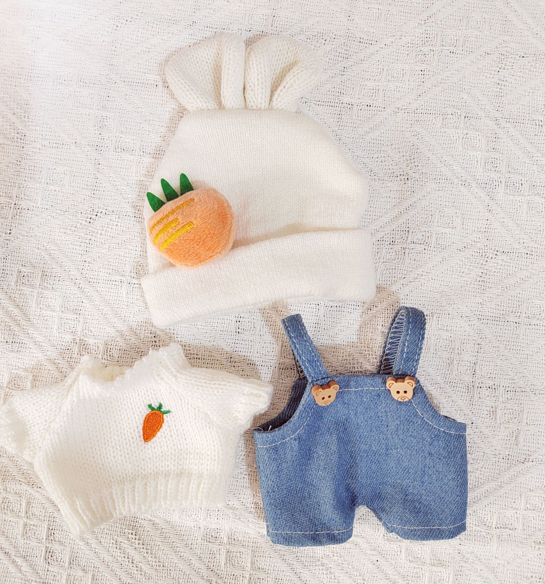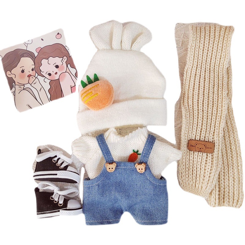 | nameOriginal | 20cm cotton doll carrot suit white sweater bunny hat Denim baby bag pants replacement clothes |
