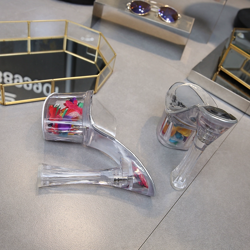 20cm super high heel sandals stage catwalk 18cm nightclub transparent waterproof platform crystal thick heel sky high women's shoes
