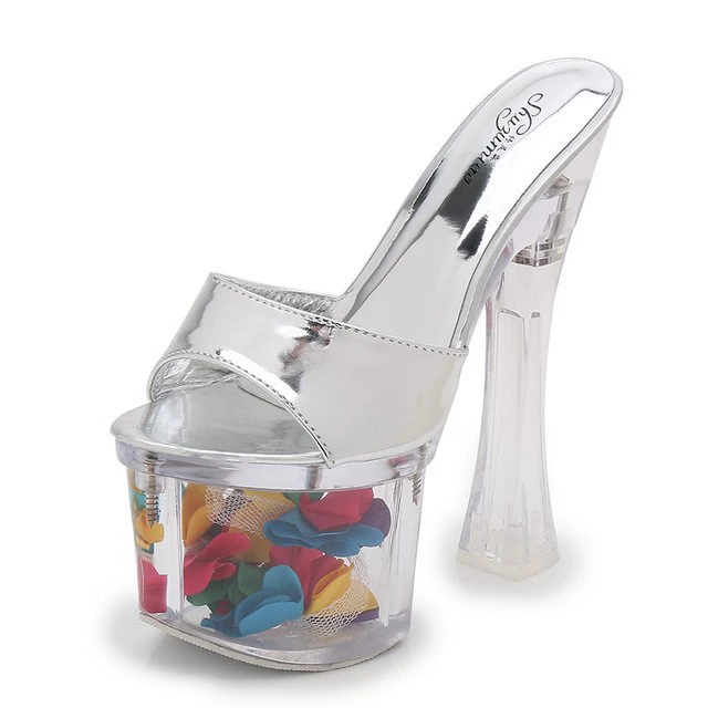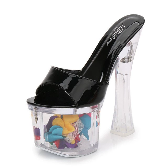20cm super high heel sandals stage catwalk 18cm nightclub transparent waterproof platform crystal thick heel sky high women’s shoes