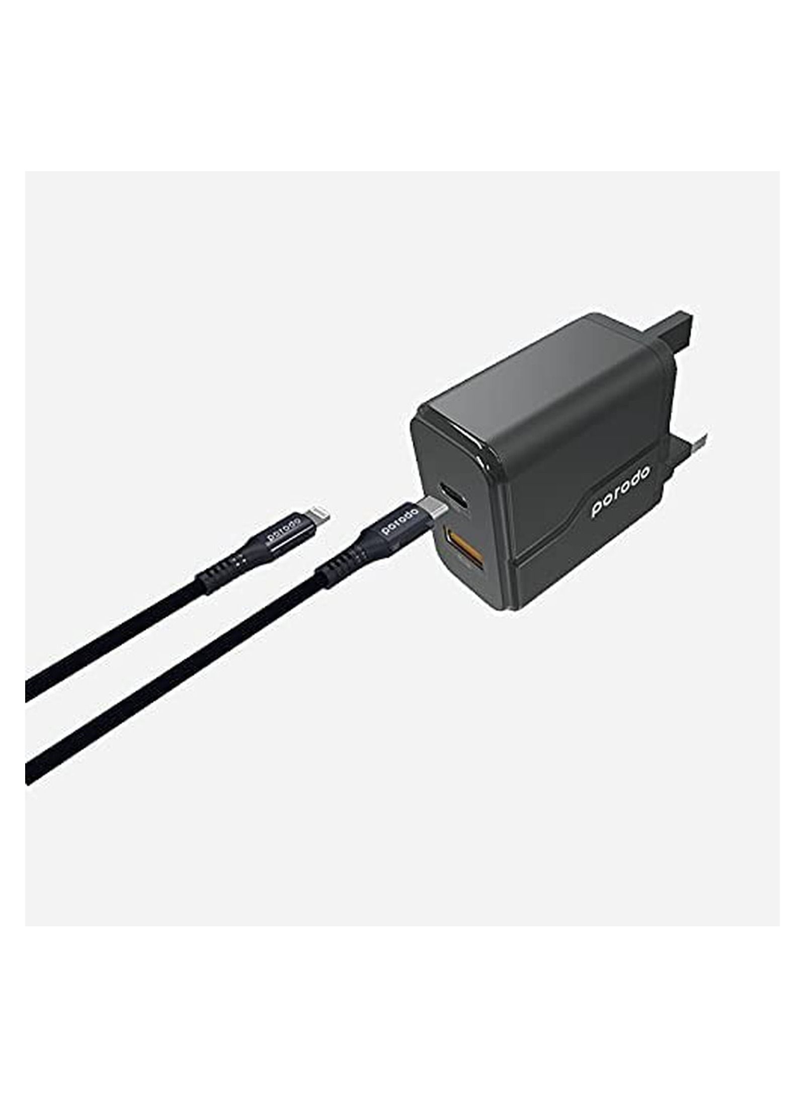| nameOriginal | iPhone Wall Charger PD 20W + QC3.0 UK With Braided Type-C To Lightning PD Cable 1.2M Compatible with iPhone 14/14 Plus/ 14 Pro/iPhone 13/13 Plus/ 12/11/XS/Pro Max /Pro/Mini/SE/ ipad 9 etc, Black |