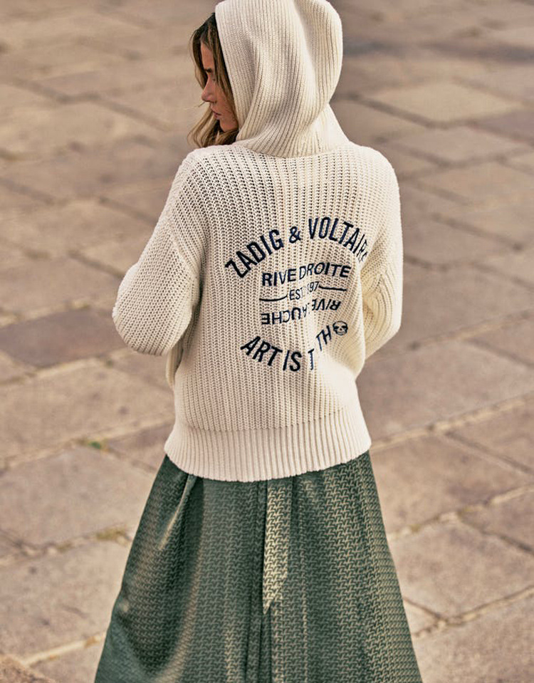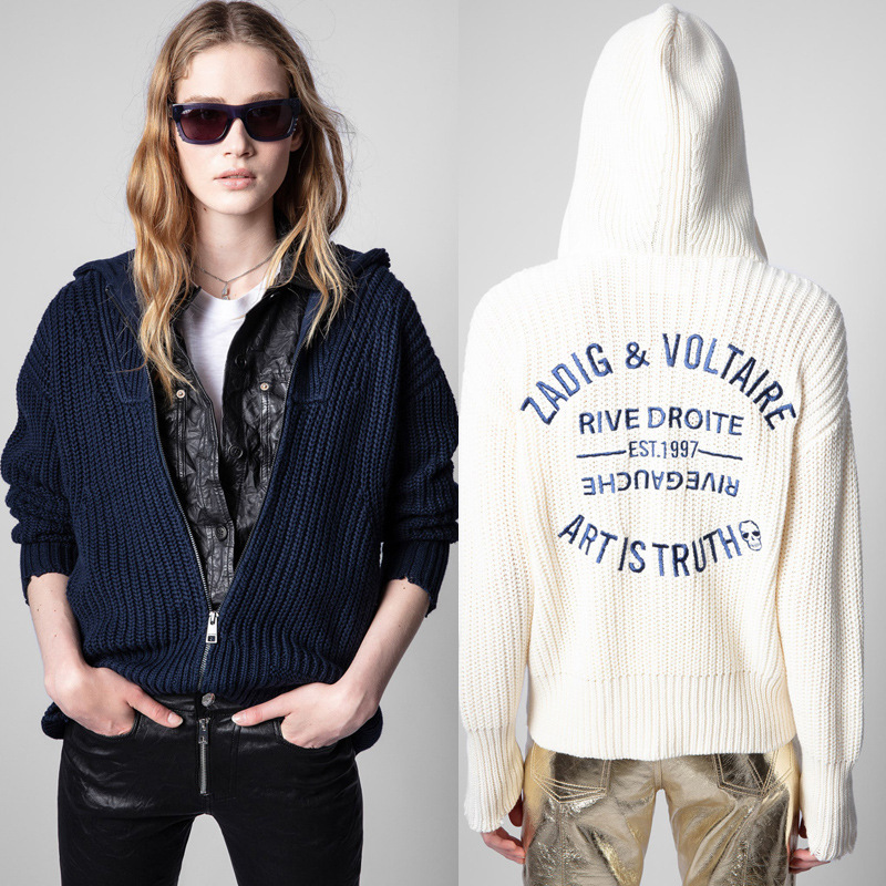 | nameOriginal | 21 Autumn and Winter New French ZV Loose Cashmere Classic Letter Embroidered Zipper Cardigan Hooded Sweater Knitwear Women |