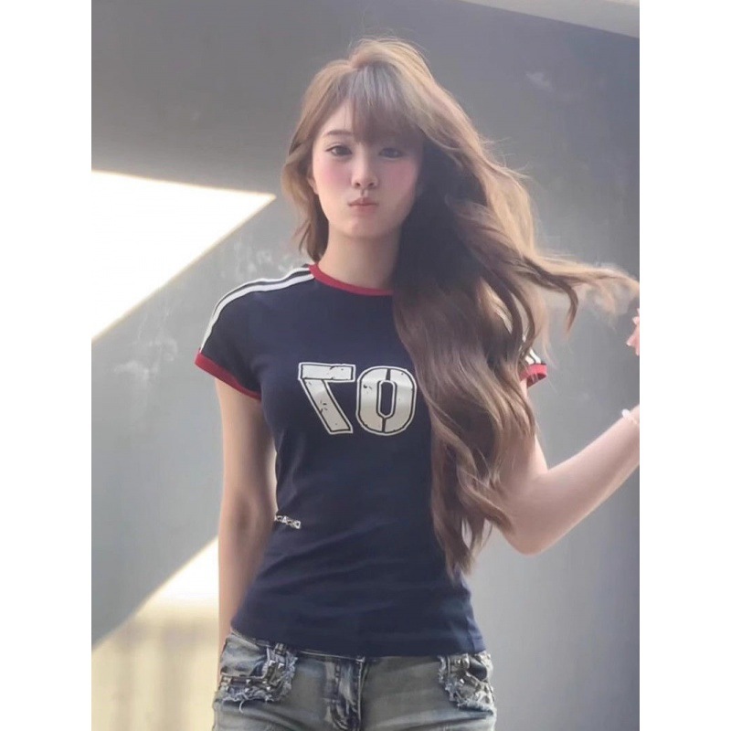 | nameOriginal | [210g 40 1 × 1 fine cotton] stitching contrast color shoulder short short sleeve T-shirt women's slim thin Joker top |
