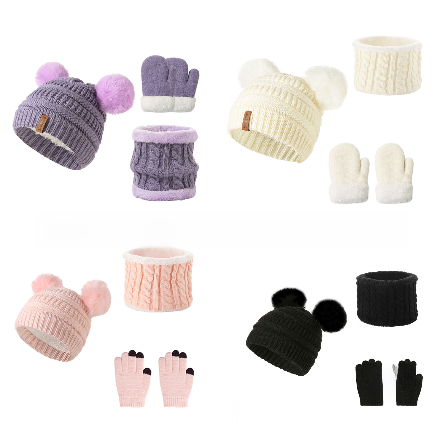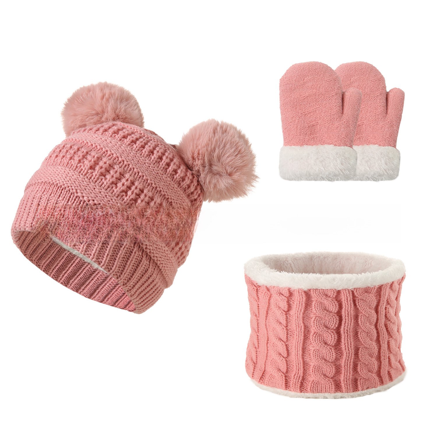 | nameOriginal | 22 New Double Ball fleece-lined scarf warm children's hat scarf gloves 3three pieces suit cross-border Amazon |