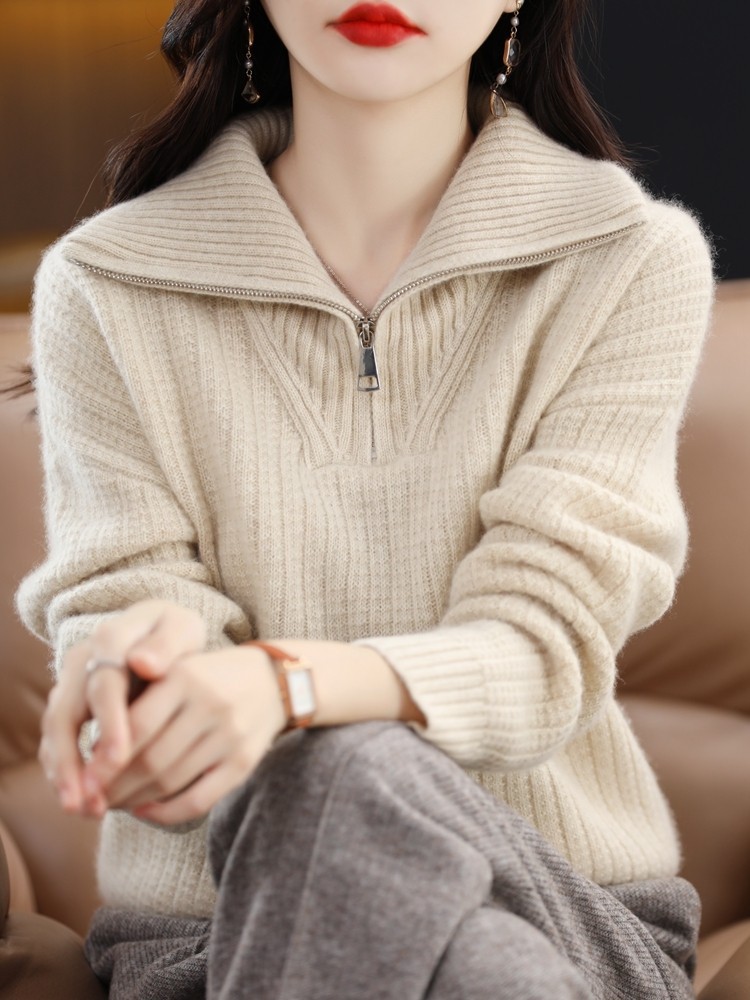 | nameOriginal | 22 thick half-open zipper 100 pure woolen sweater women's lapel pullover loose lazy style knitted sweater bottoming shirt |