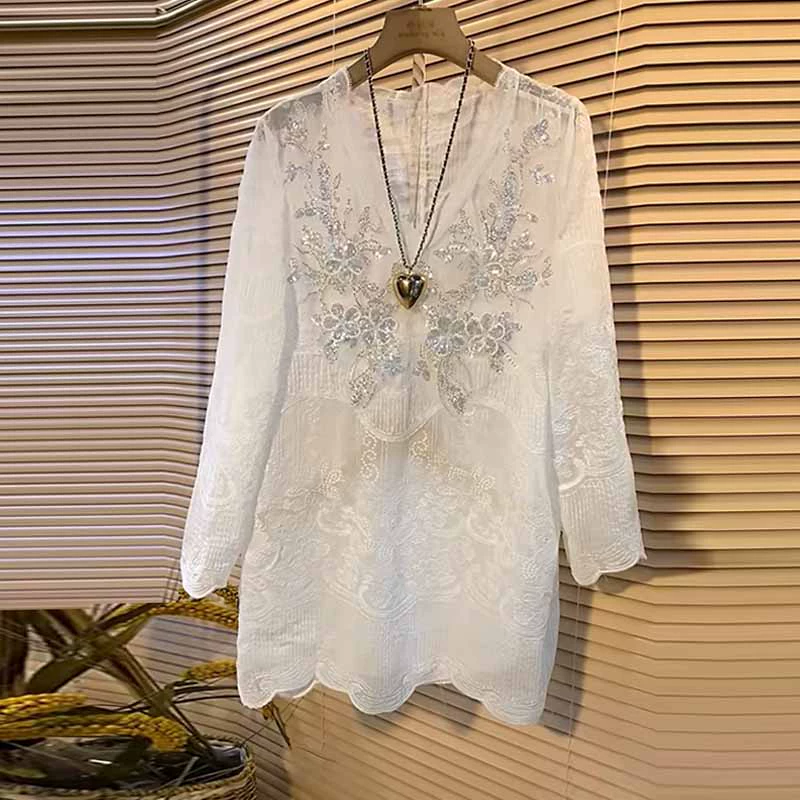 | nameOriginal | 220 pounds Korean style fattened long-sleeved top for fat girls, ladylike style plus size women's V-neck hot diamond three-dimensional flower lace top |