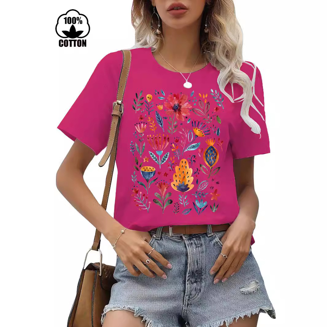 | nameOriginal | 220g cotton Amazon independent station short sleeve round neck Europe and the United States cross-border flower printed t-shirt cross-border e-commerce women |