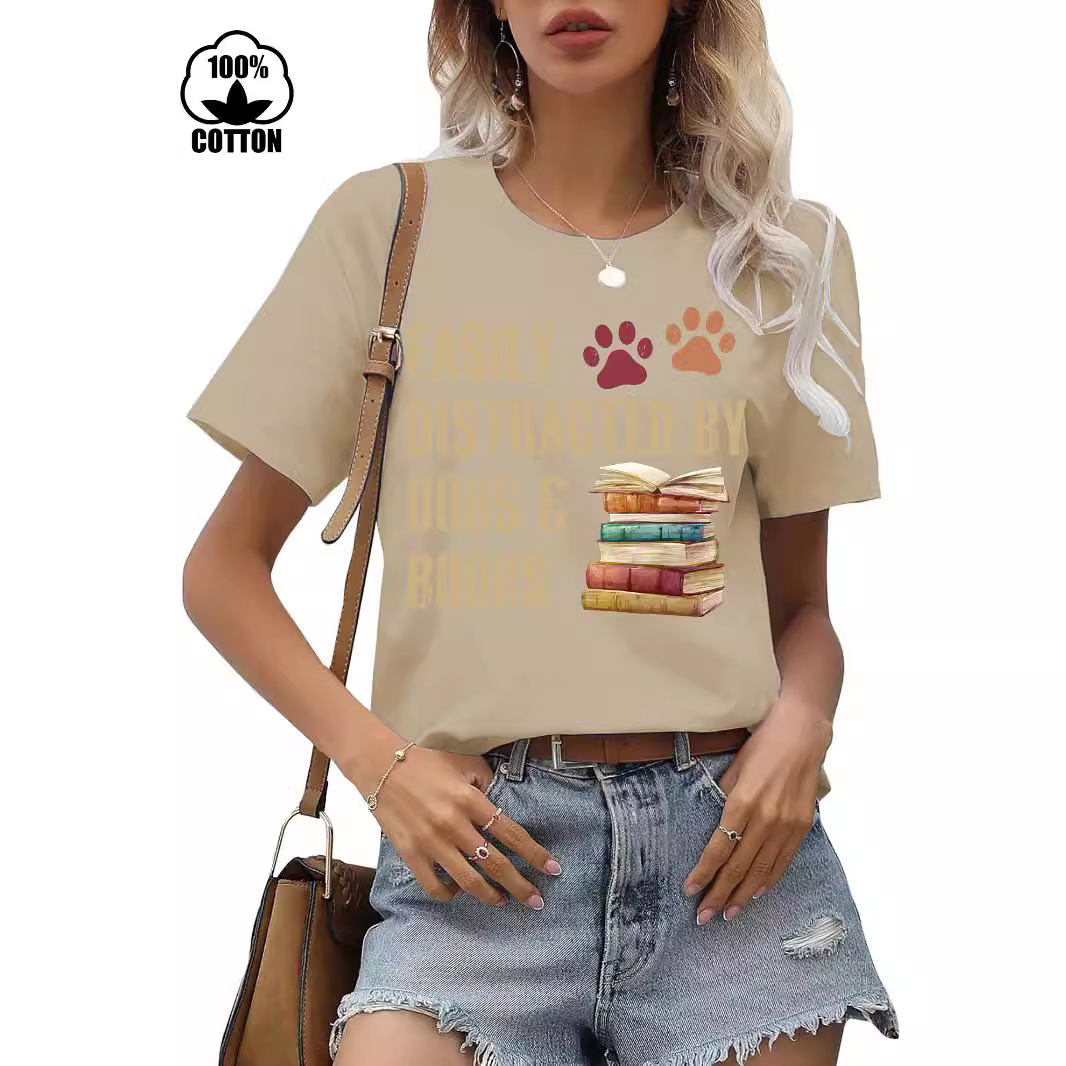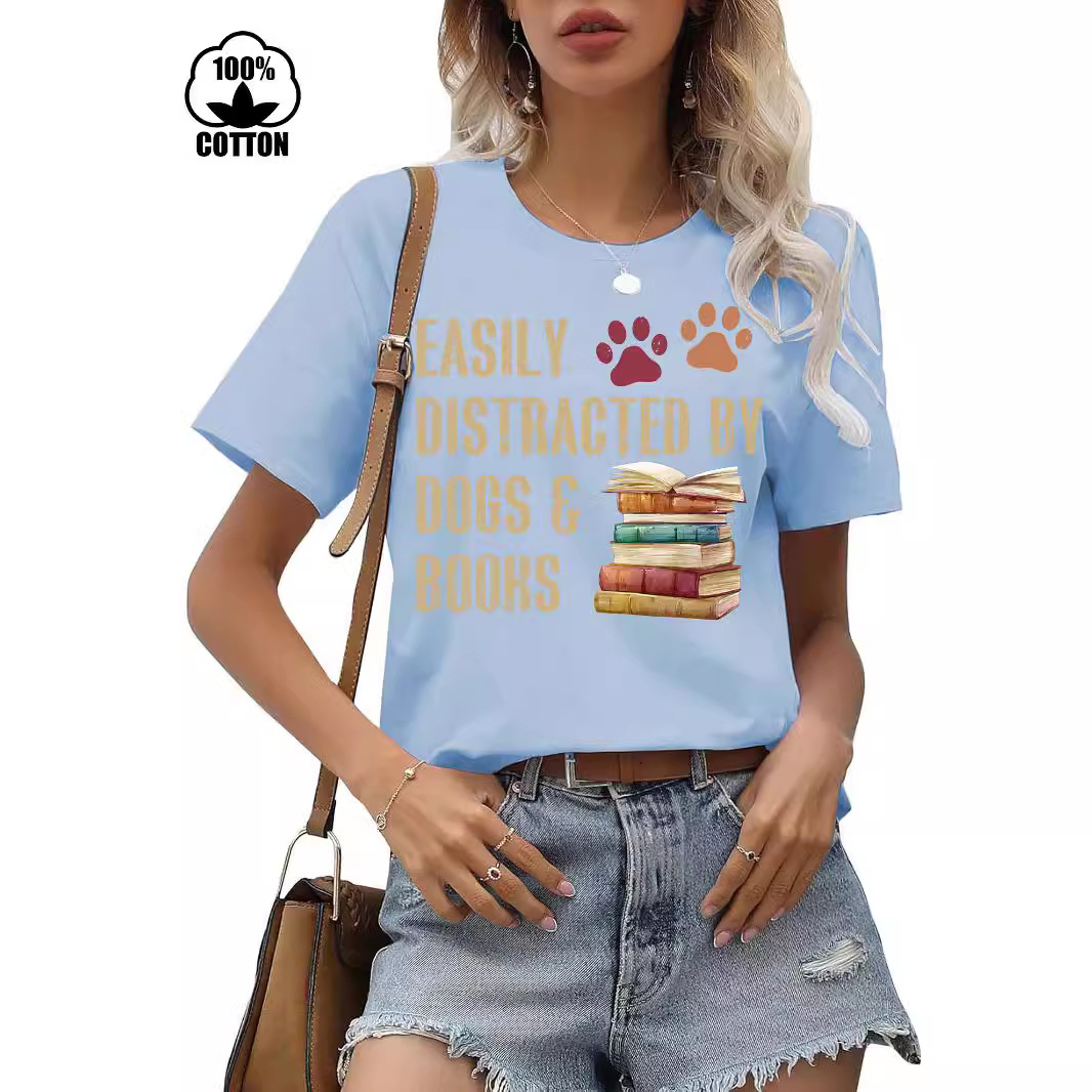 220g cotton Amazon independent station short sleeve round neck European and American cross-border slogan printed t-shirt cross-border e-commerce women
