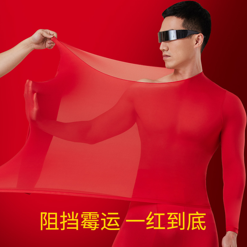| nameOriginal | 22188 autumn and winter Red men's suit hyaluronic acid warm ultra-thin long sleeve anti-static seamless bottoming skin care clothing |