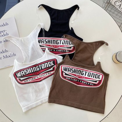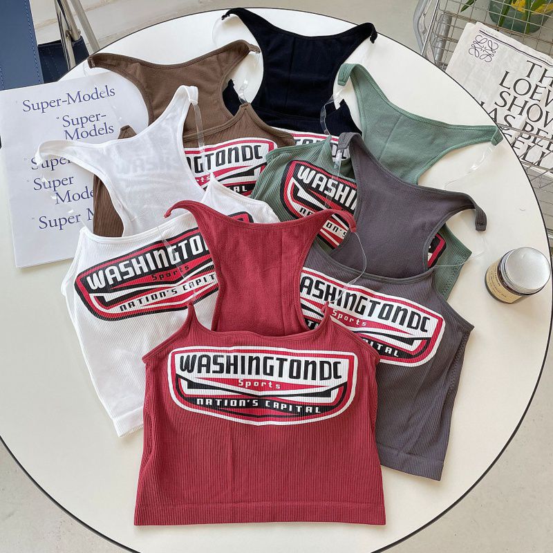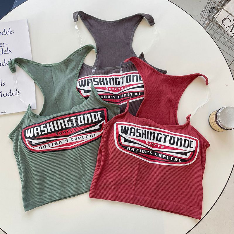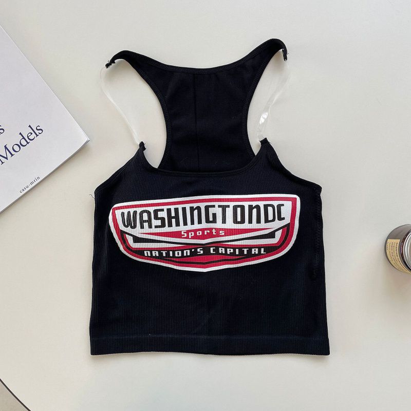 2262# American Spice Girls Invisible Shoulder Strap Printed Camisole Slimming Short Sleeveless Tight Top with Chest Pad