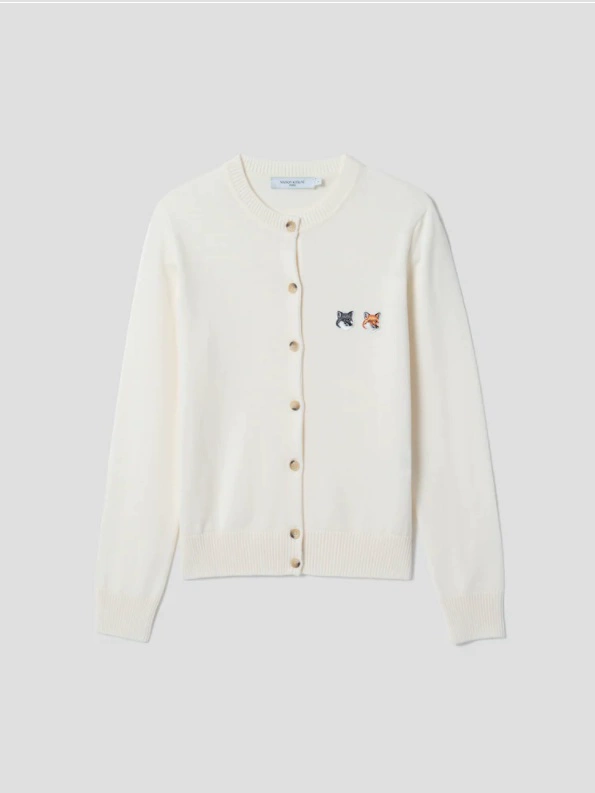 22AW Kitsune Classic Double Fox Head Women’s Wool Knitted Long Sleeve Cardigan