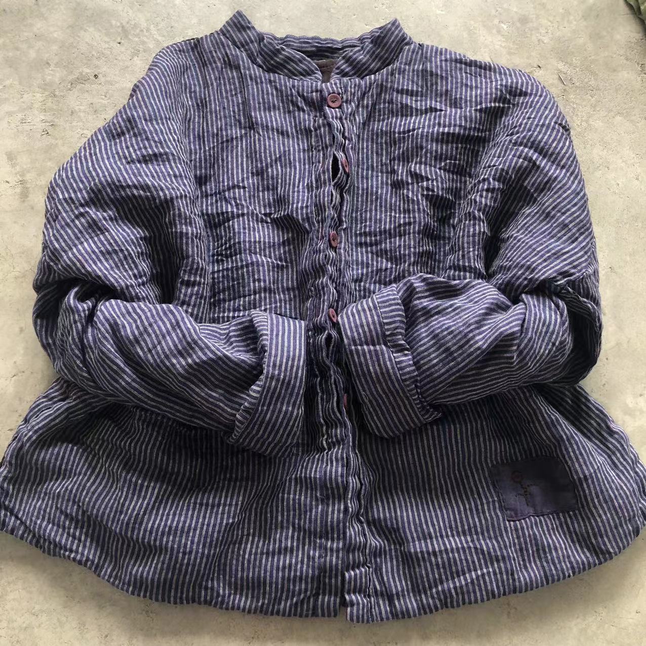| nameOriginal | 23/9/light winter/artistic vintage yarn-dyed linen striped washed distressed hand embroidered small stand collar cardigan cotton-padded jacket |