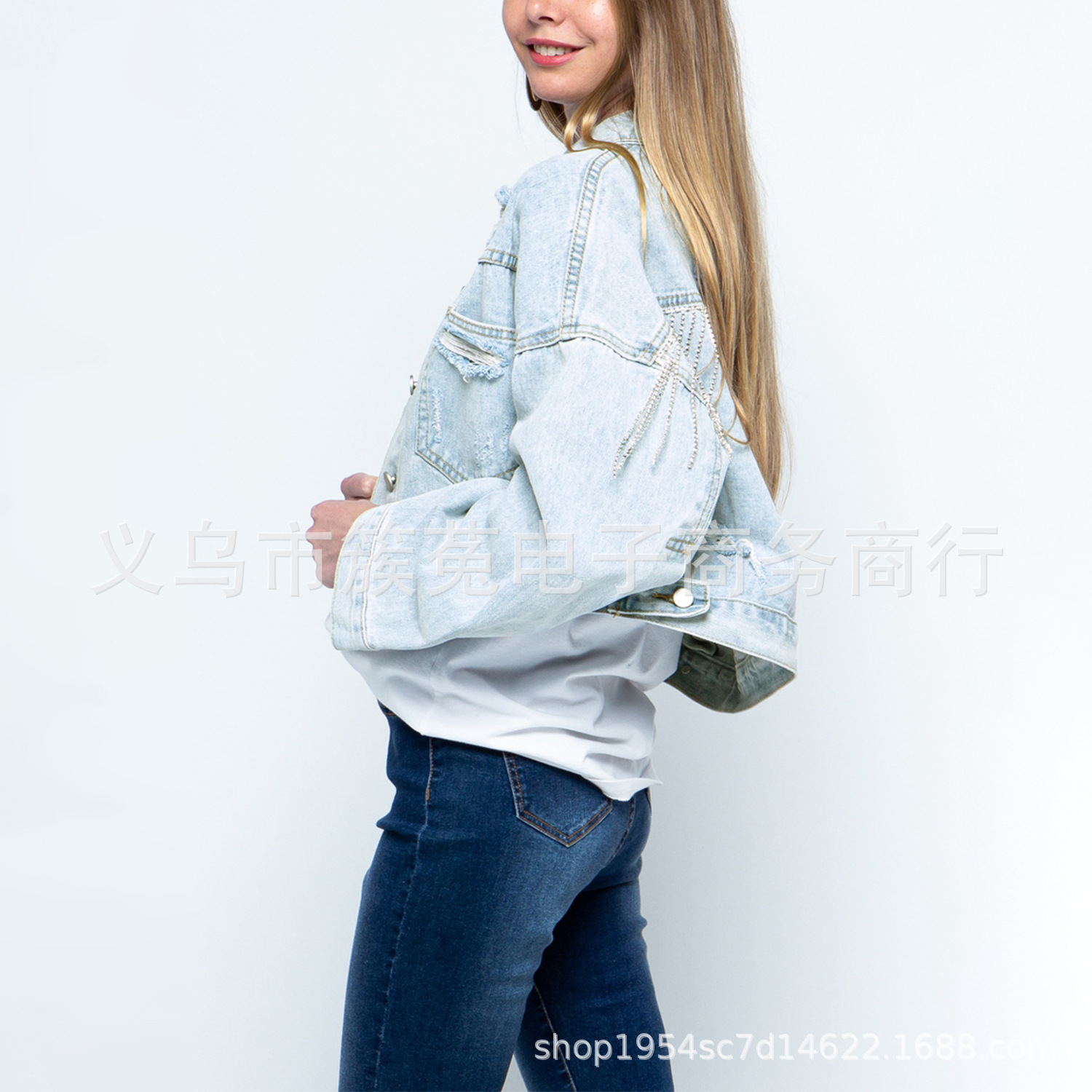 | nameOriginal | 23 Amazon Foreign Trade New Denim Jacket Spring and Autumn Rhinestone Tassel Long Sleeve Rose Red Denim Jacket Factory |