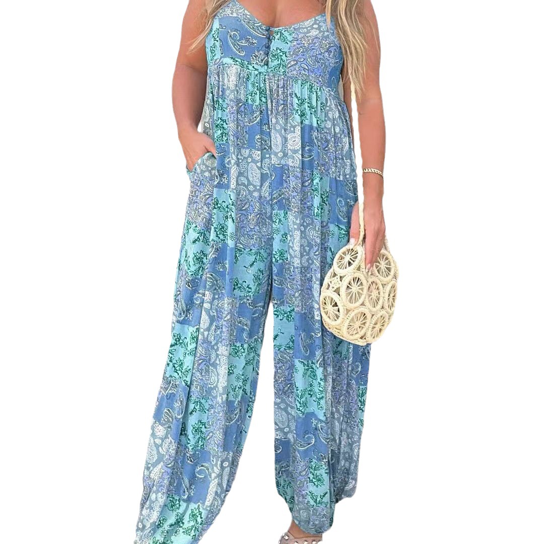 | nameOriginal | 23 Amazon wish stand alone cross-border hot products eBay women's high waist trendy loose printed shoulder strap jumpsuit |