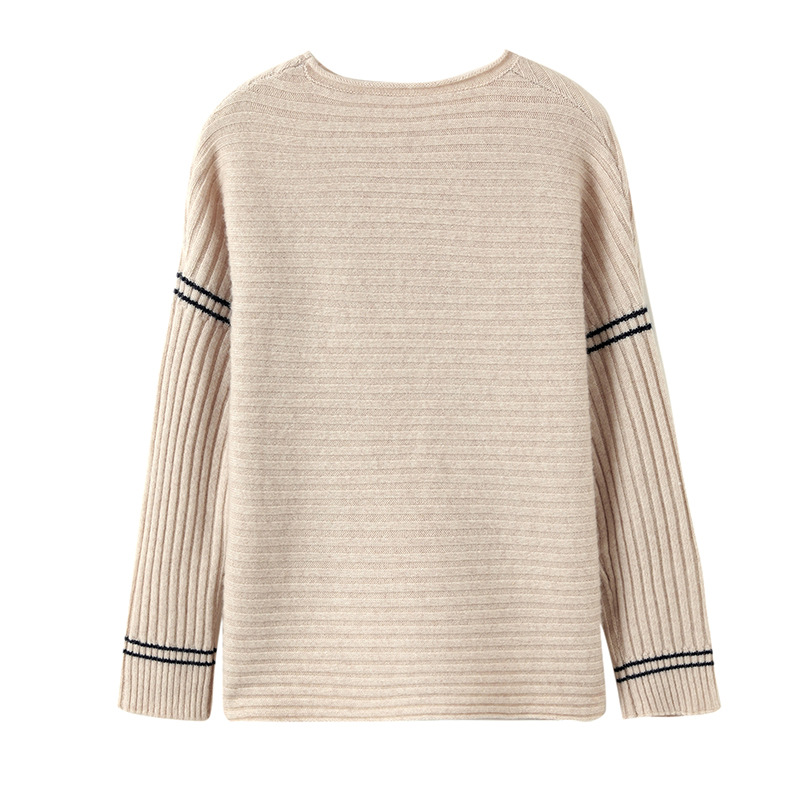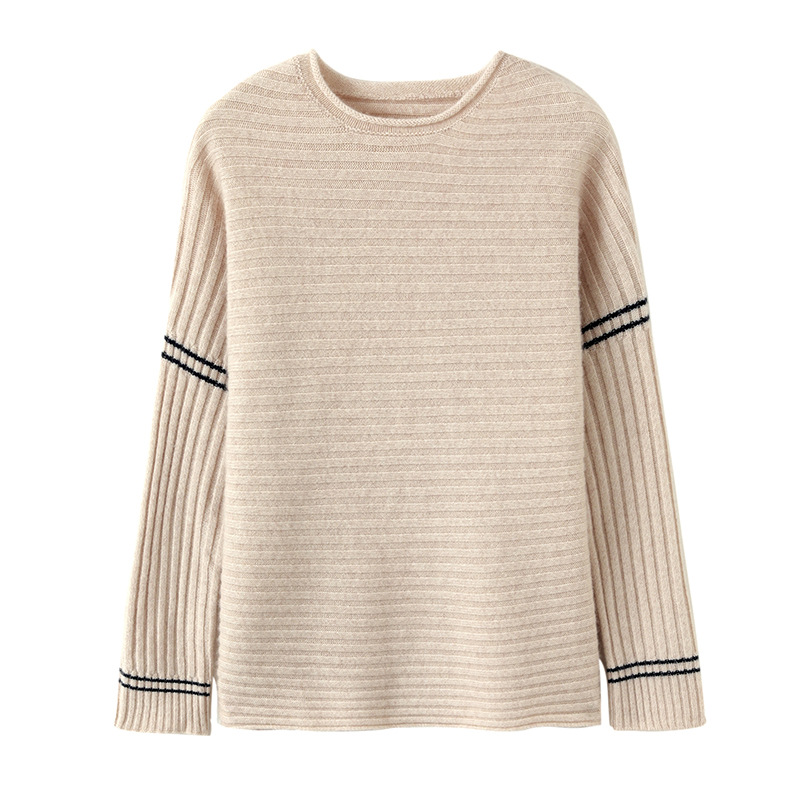 | nameOriginal | 23 autumn and winter New contrast color striped round neck long sleeve 100% pure cashmere casual sweater women's outer cashmere top |