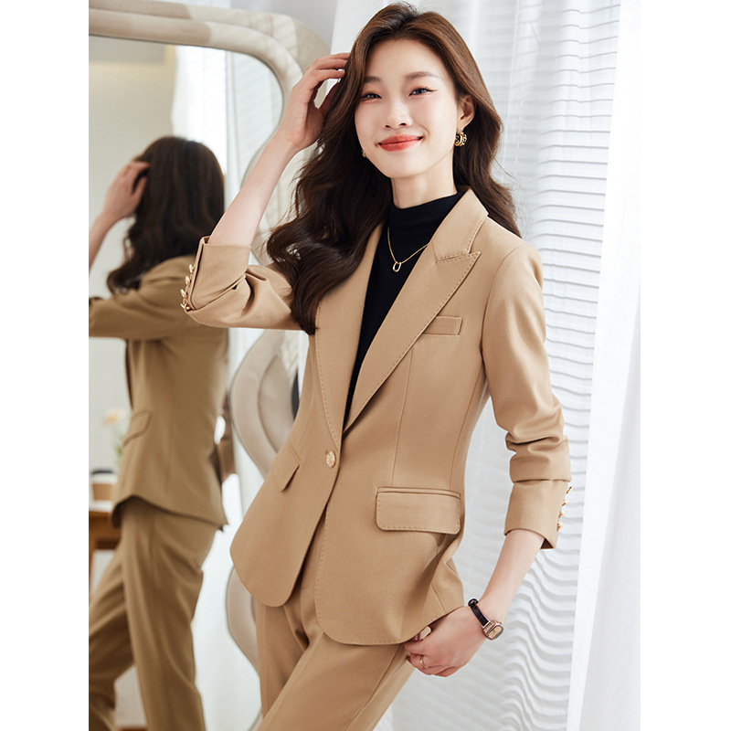 | nameOriginal | 23 autumn and winter New khaki long sleeve High sense simple fashion suit collar coat women's pants two-piece suit |
