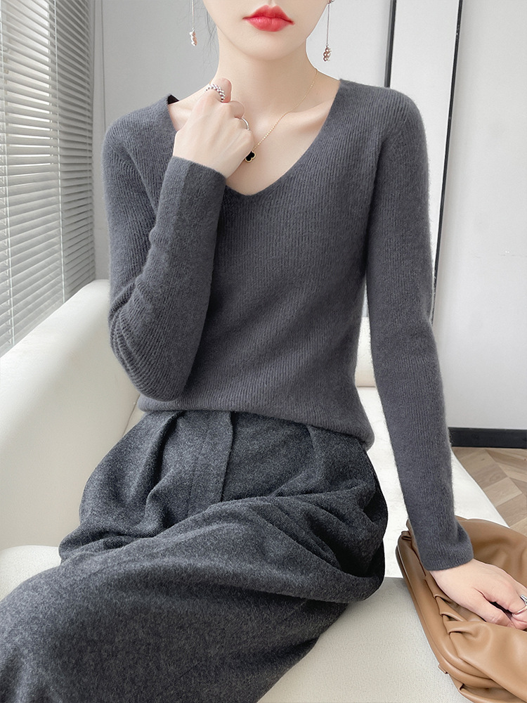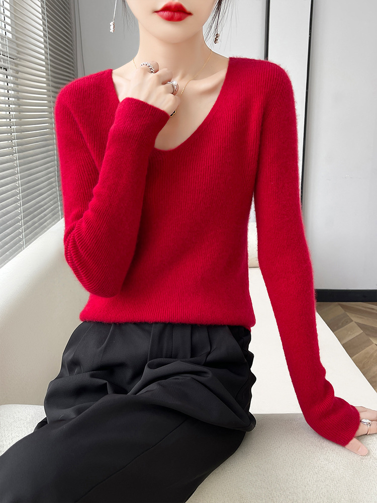 23 autumn and winter New loose slimming knitted bottoming sweater woolen sweater women's V-neck pullover short all-match sweater inner wear