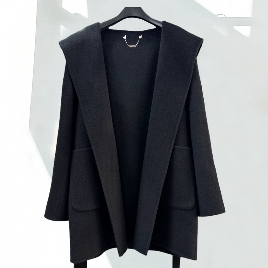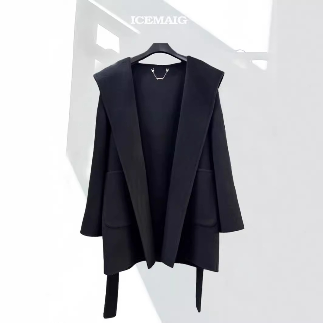| nameOriginal | 23 autumn and winter New M French style 100 wool hooded coat belt gray woolen coat for women |