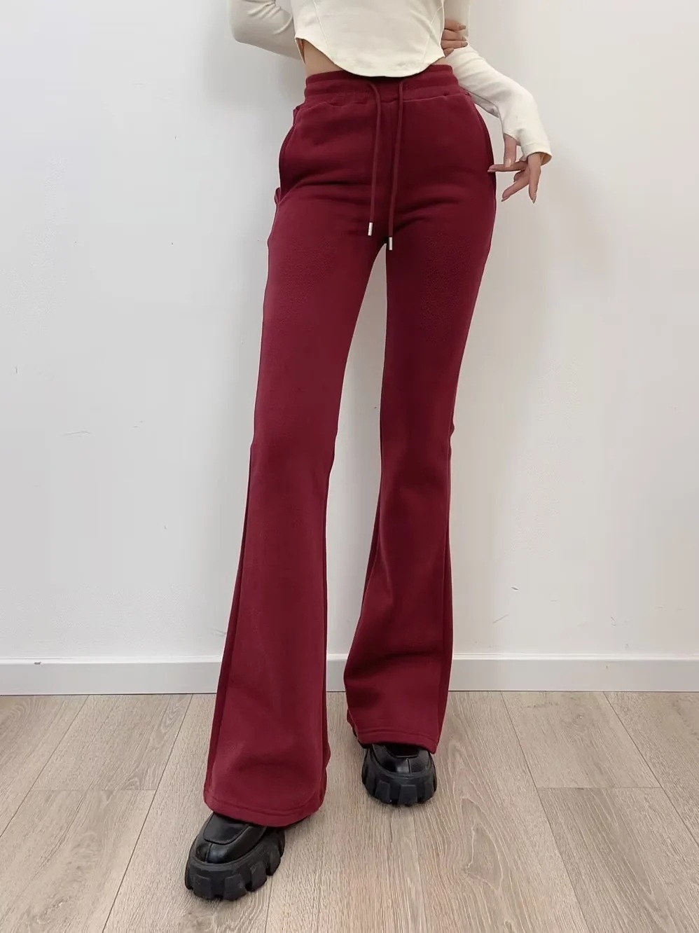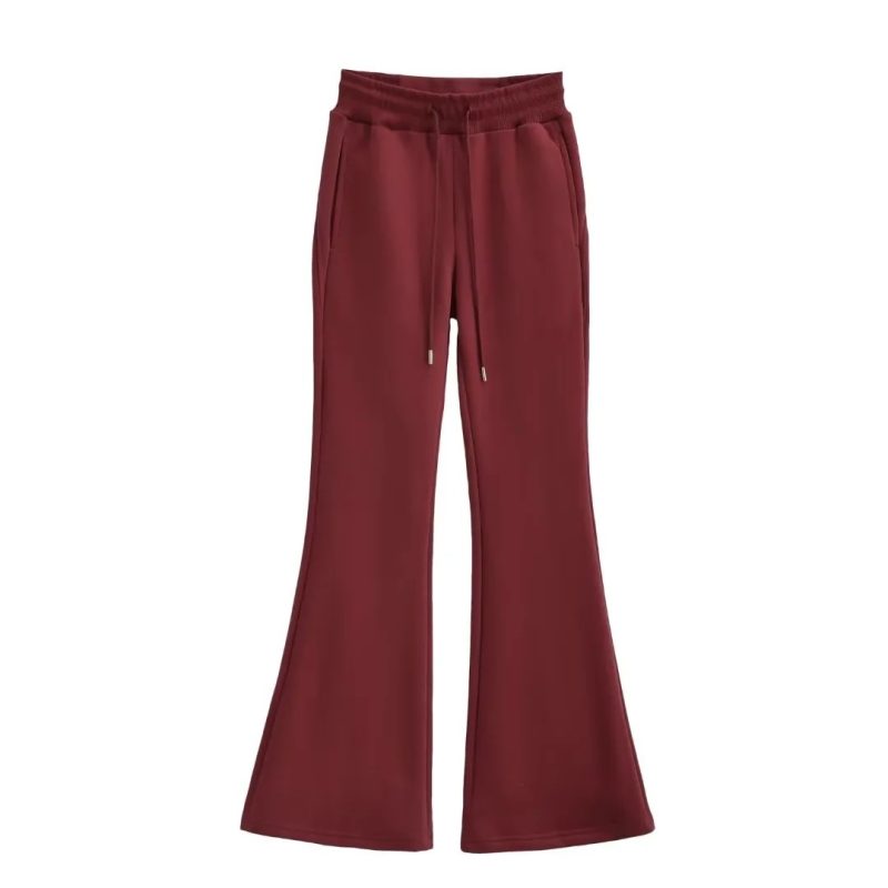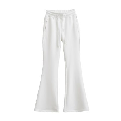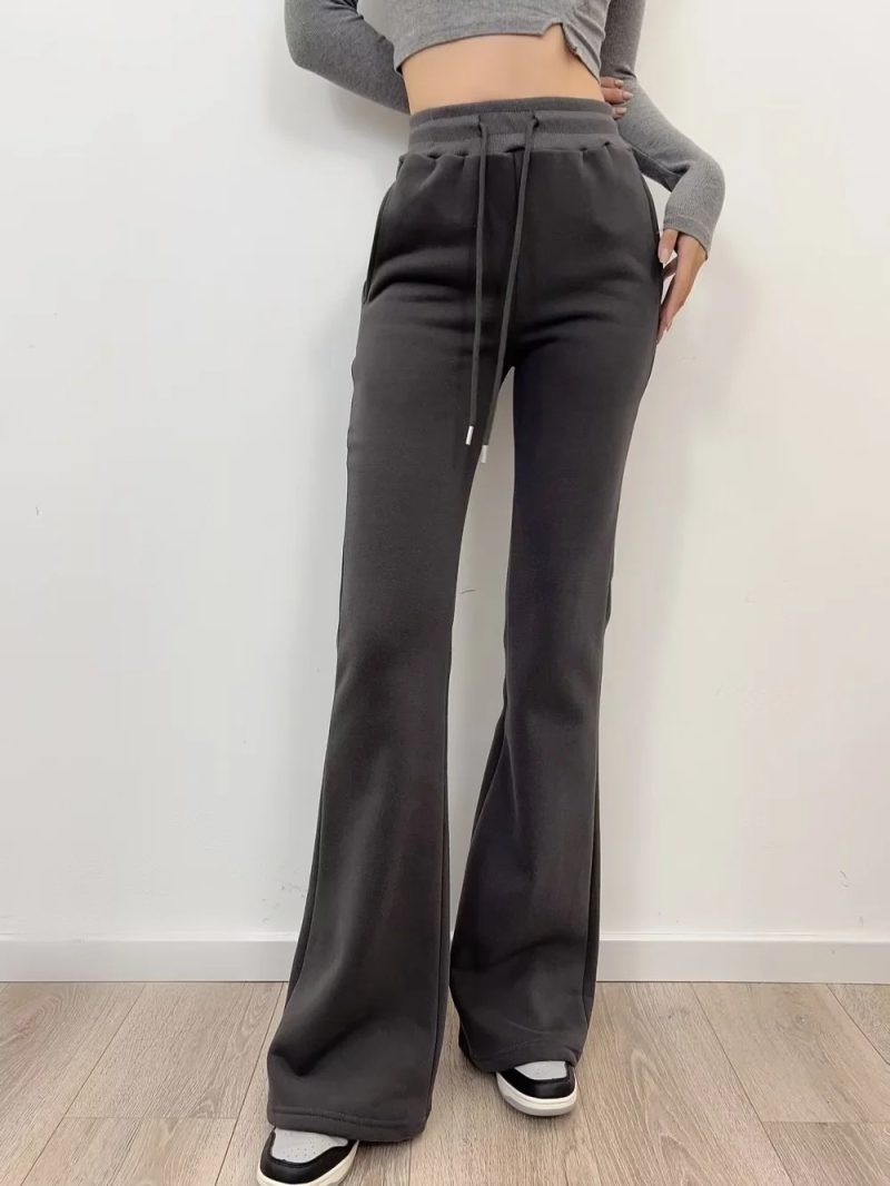 nameOriginal | 23 autumn and winter New Women's European and American style fashion fleece-lined thick drawstring rib stitching waist flared pants mop sweatpants |