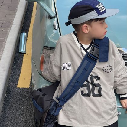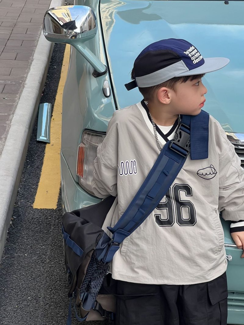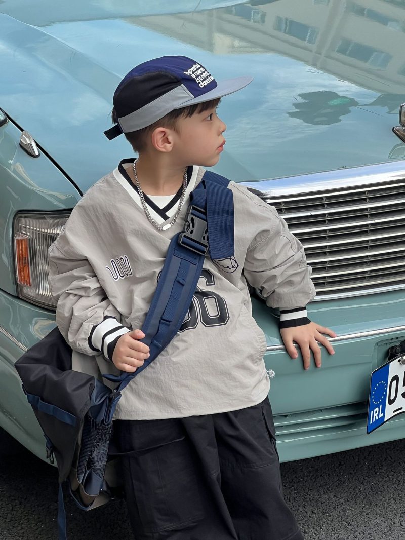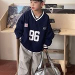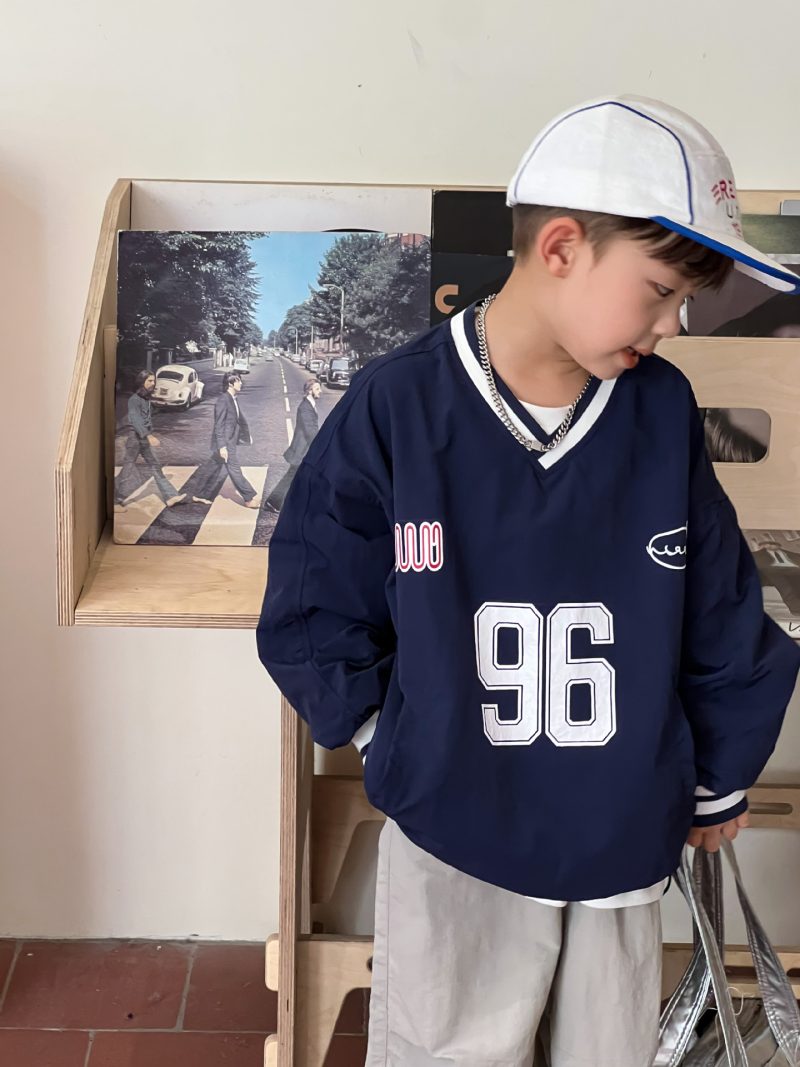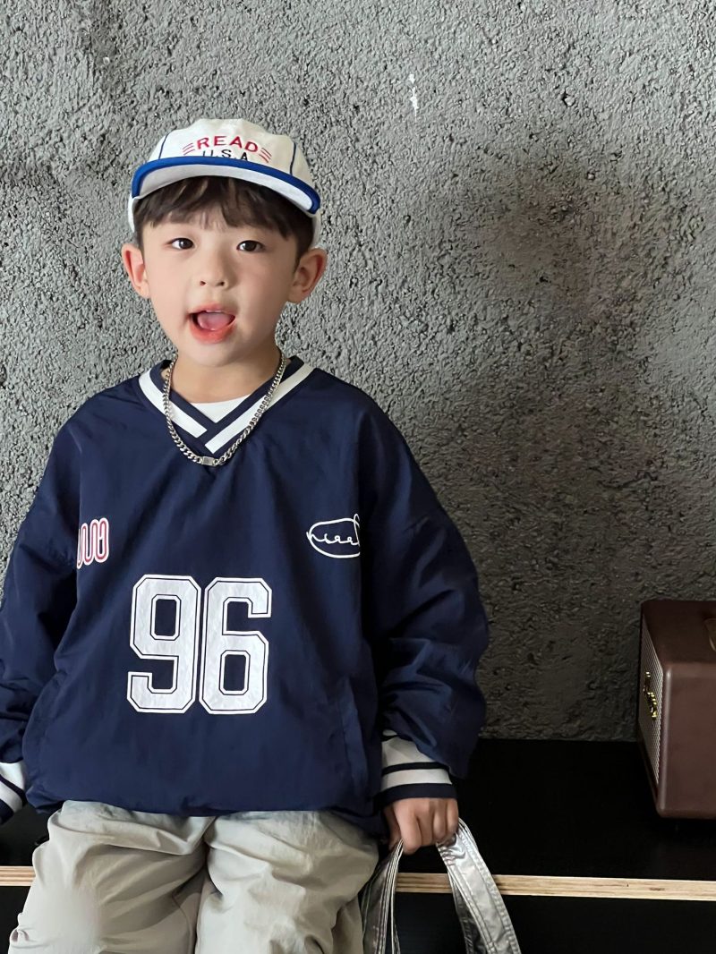 nameOriginal | 23 Autumn New Children's Wear Boys Small and Medium-sized Children's Letter Printing Sporty V-Neck Retro Quick-drying Pullover Sweater Trendy |
