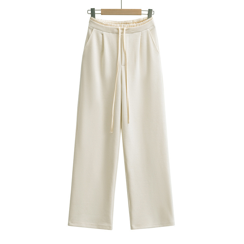 | nameOriginal | 23 Autumn New Women's Fashionable Elegant Drawstring Loose Double Waist Contrast Sanding Casual Loose Straight Leg Wide Leg Pants |