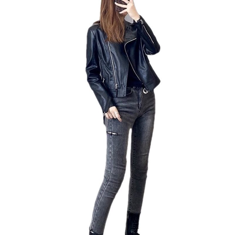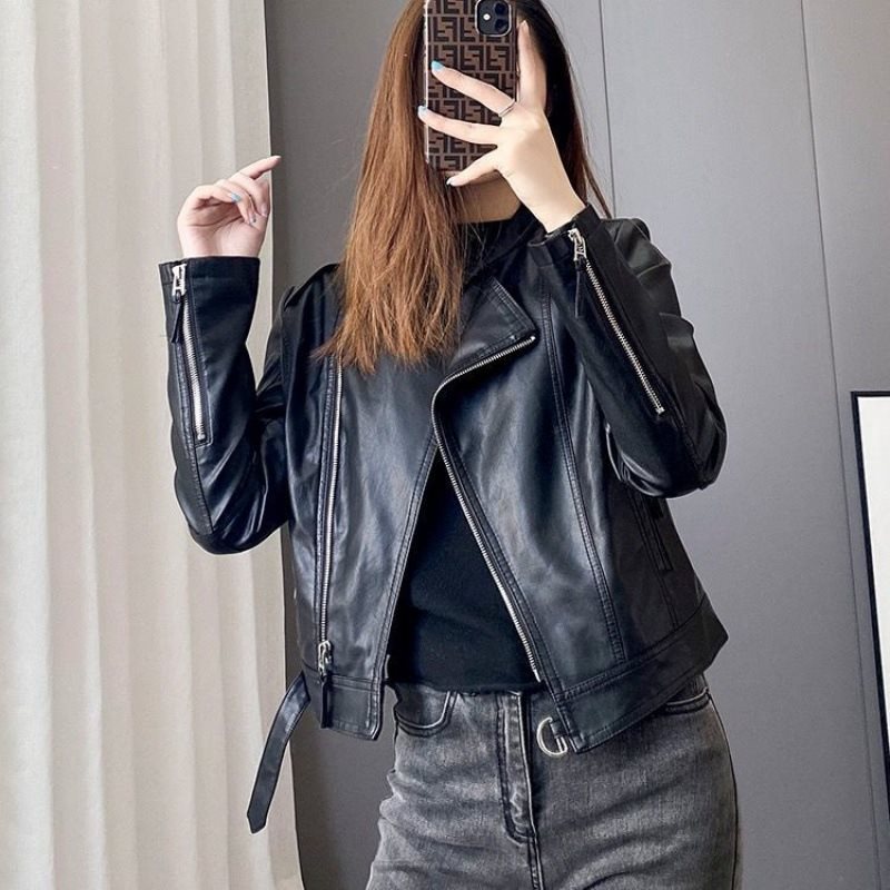 | nameOriginal | 23 New Arrival All-Match New Arrival Leather Jacket Women's Belt Short Jacket with Vertical Collar Locomotive Washed Leather Jacket Spring and Autumn |