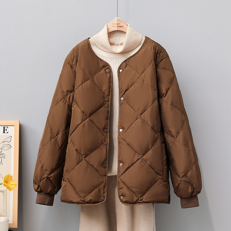 | nameOriginal | 23 New rhombus down jacket women's short white duck down fashion autumn and winter warm small liner coat fashion |