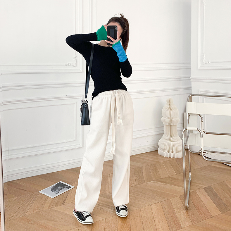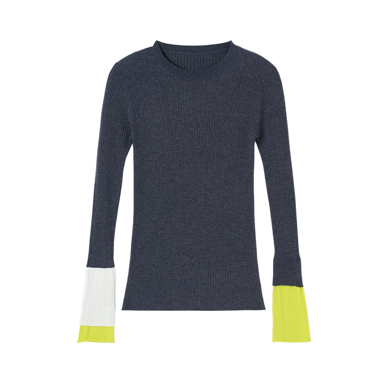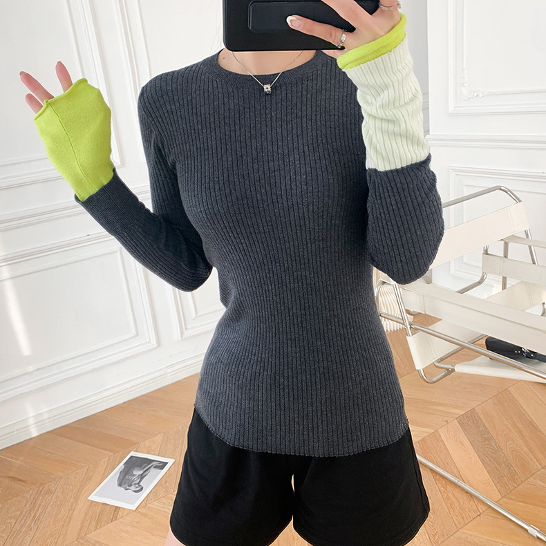 23 Spring and Summer New Fake Two-piece Cuff Multicolor Stitching Women’s Base Shirt Slim-fit Crewneck Long-sleeved Pit Top