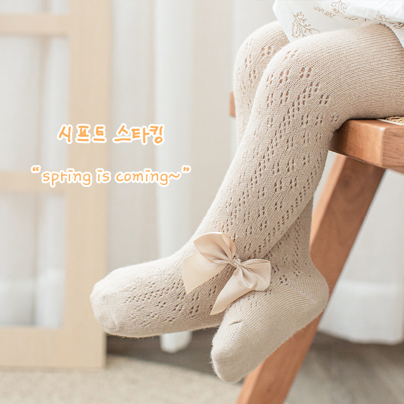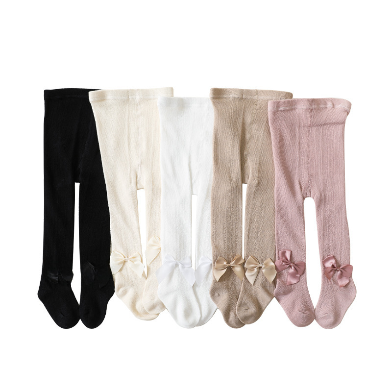 23 Spring and Summer New Spanish Loop Hollow Pantyhose Combed Cotton Big Bow Girls’ Leggings Princess Socks