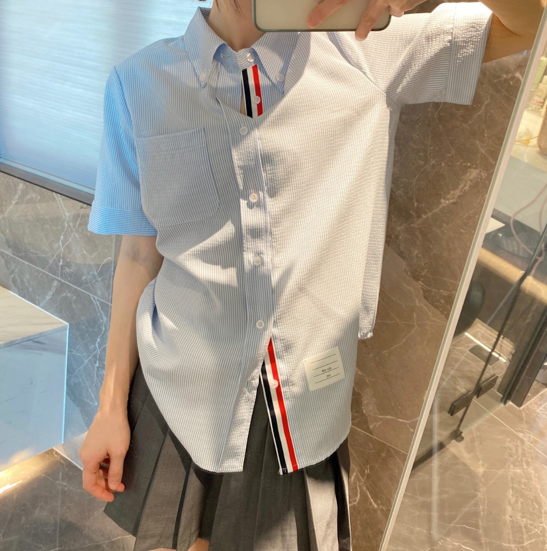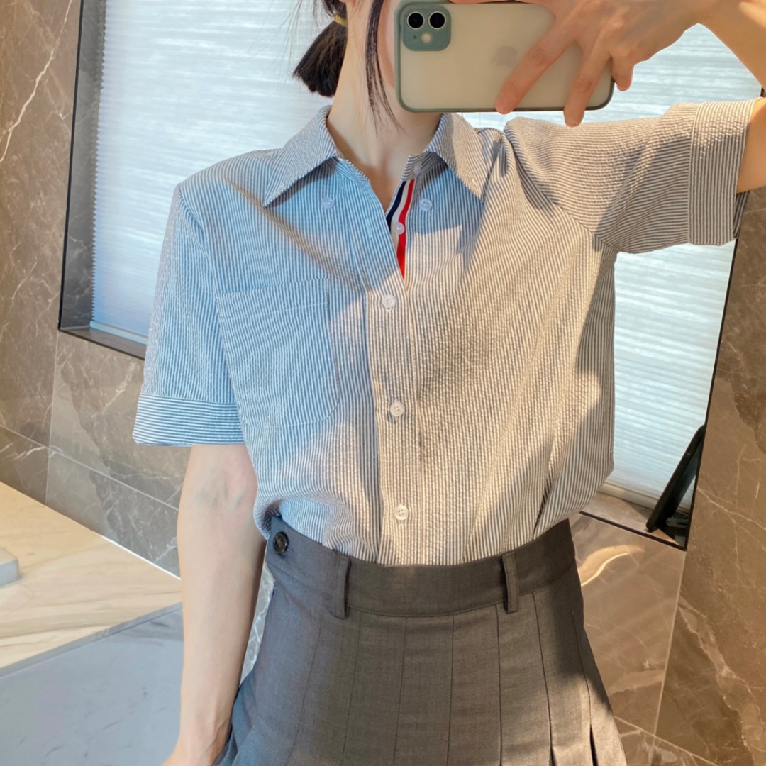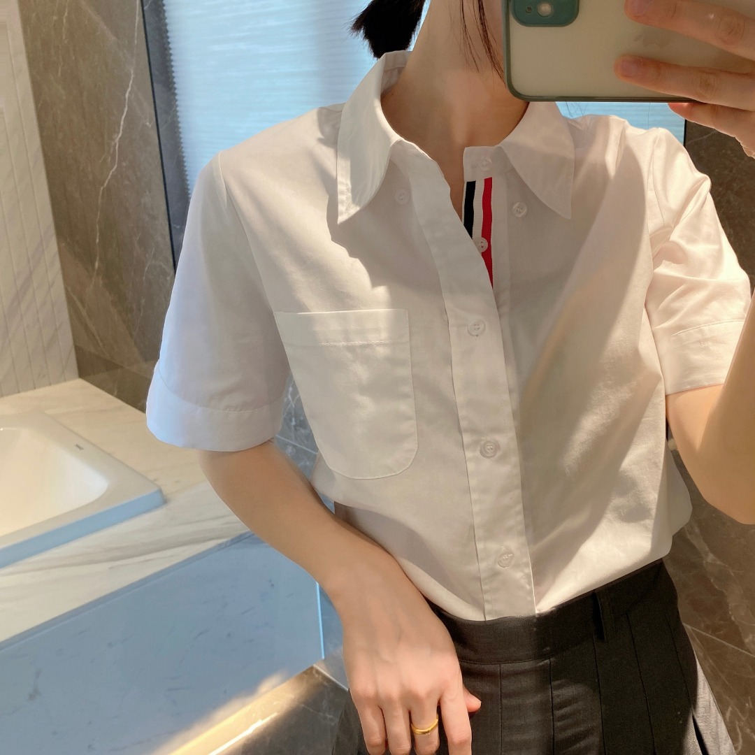 23 summer college style new placket ribbon loose casual slimming polo collar short sleeve shirt