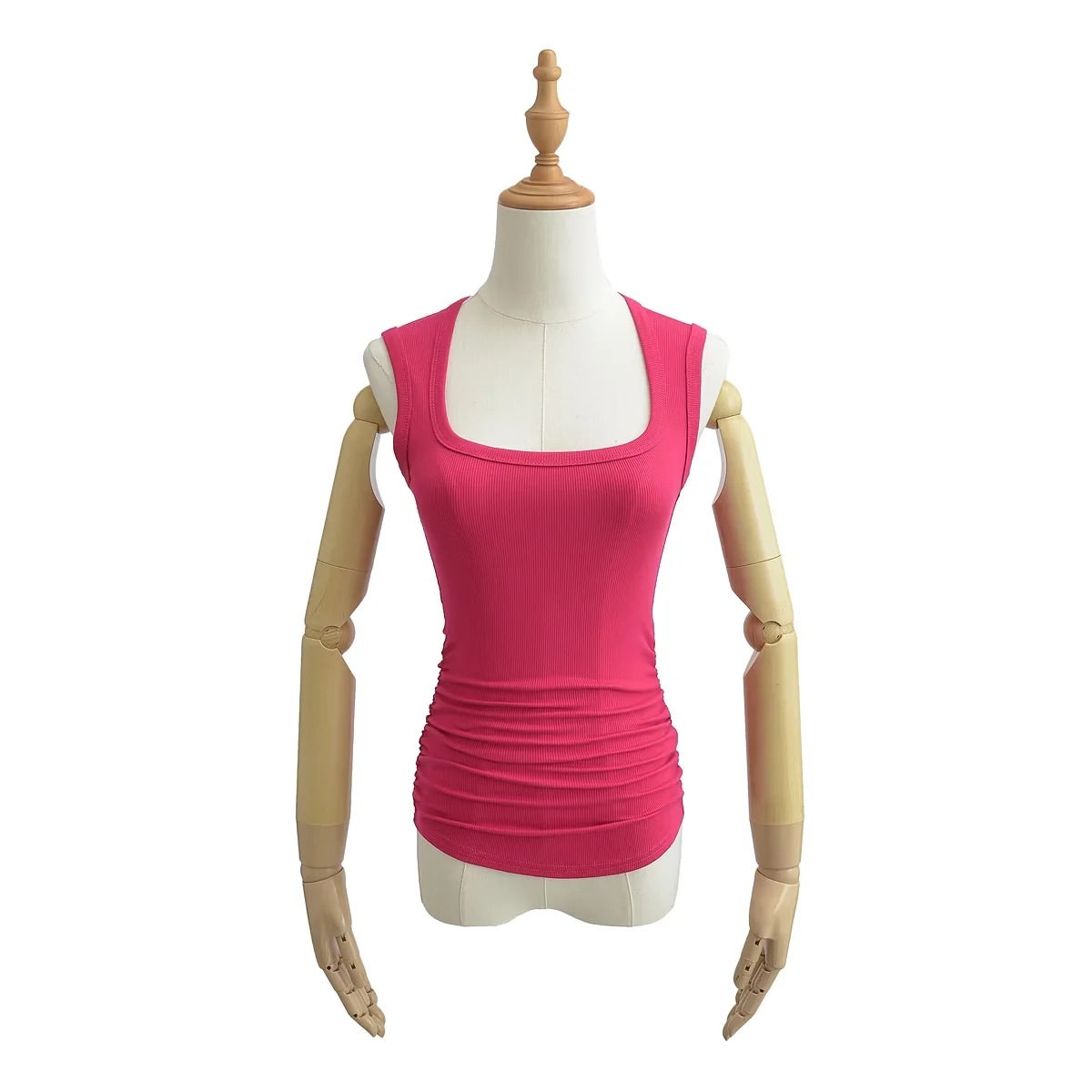 23 summer new female fashion hot girl European and American ins design trapezoidal collar drawstring pleated curved hem small vest