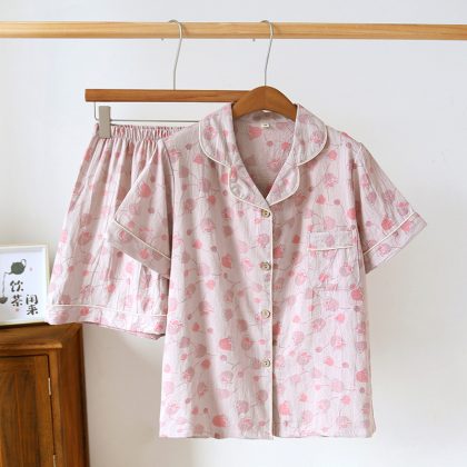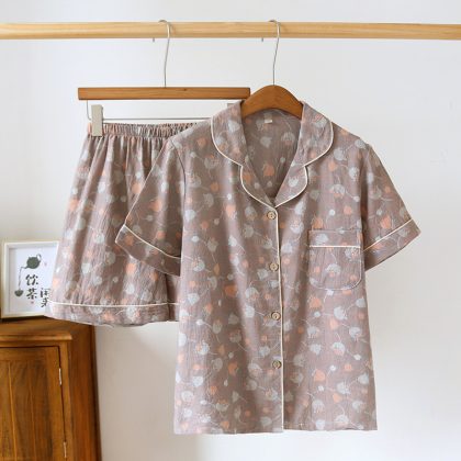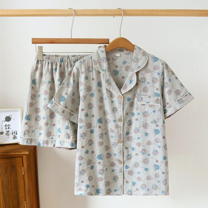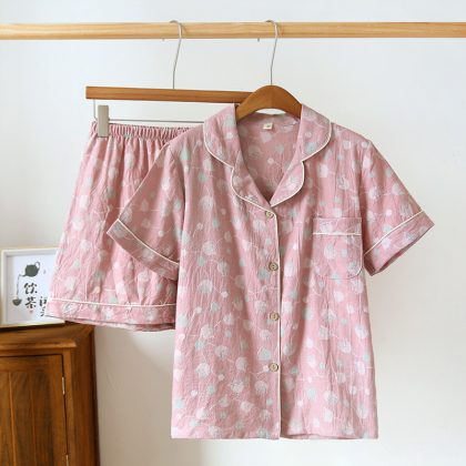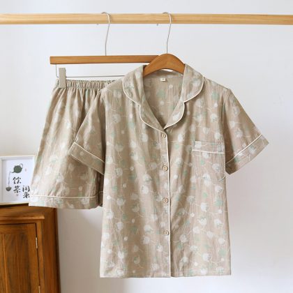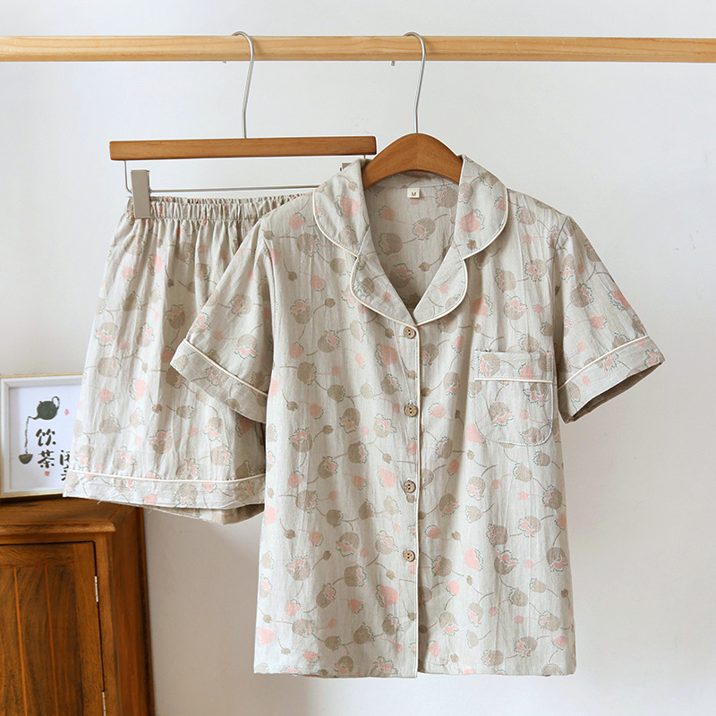 23 summer new vintage yarn-dyed jacquard short sleeve shorts women's lapel suit home clothes