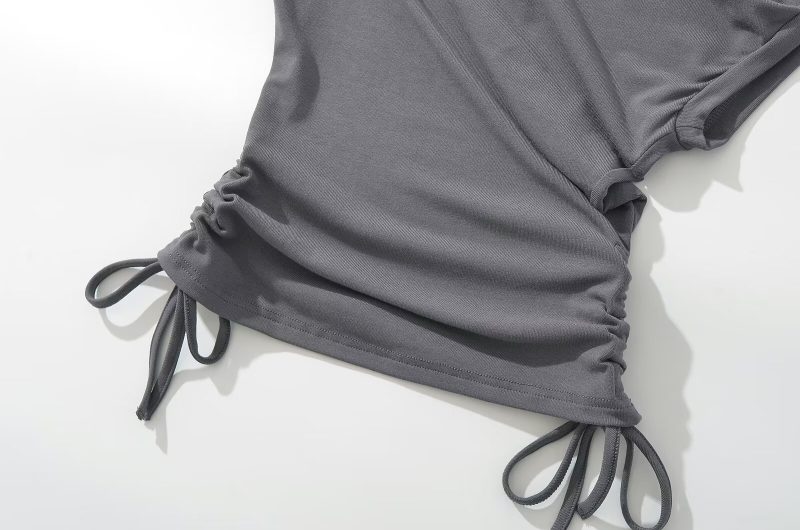 nameOriginal | 23 summer new women's European and American fashion hot girl sexy drawstring pleated oblique collar short running casual one-shoulder T-shirt |
