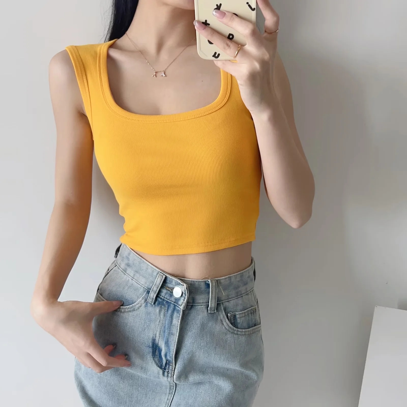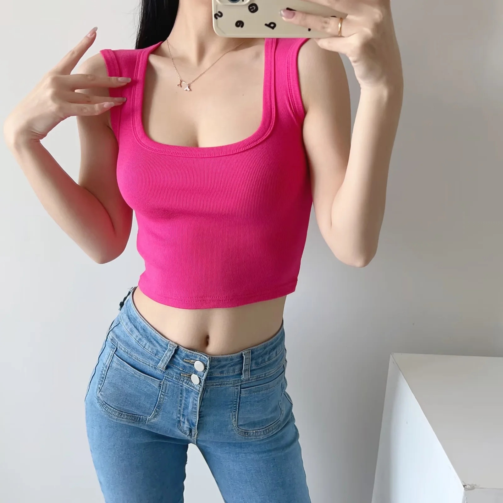 | nameOriginal | 23 Summer New Women's Sexy Spice Girl Thin Thread Slim-Fit Sexy Big Square Collar Wide Shoulder Sleeveless Short Small Vest |