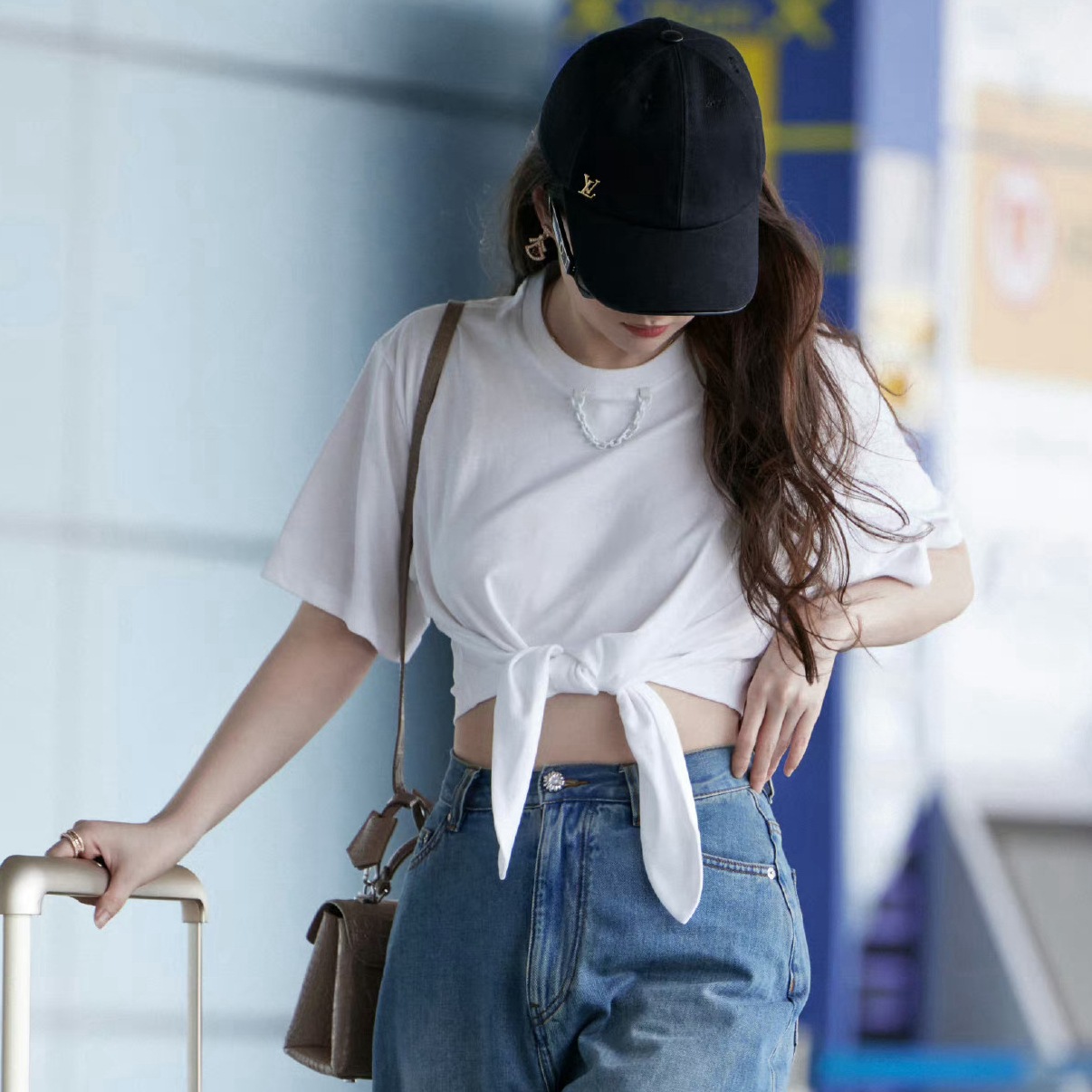 | nameOriginal | 23 Summer New Women's Tie Chain High Waist White Short Sleeve T-Shirt Navel Short Top |