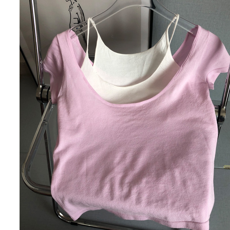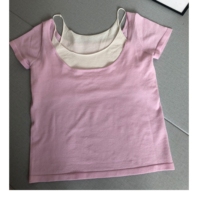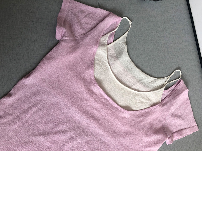 | nameOriginal | 23 Summer Silk and Linen Blended Lightweight Straight Slim Fit Round Neck Fake Two-Piece Stacked Sweater Women's Short Sleeve |