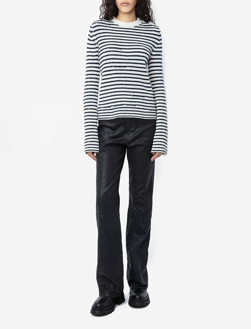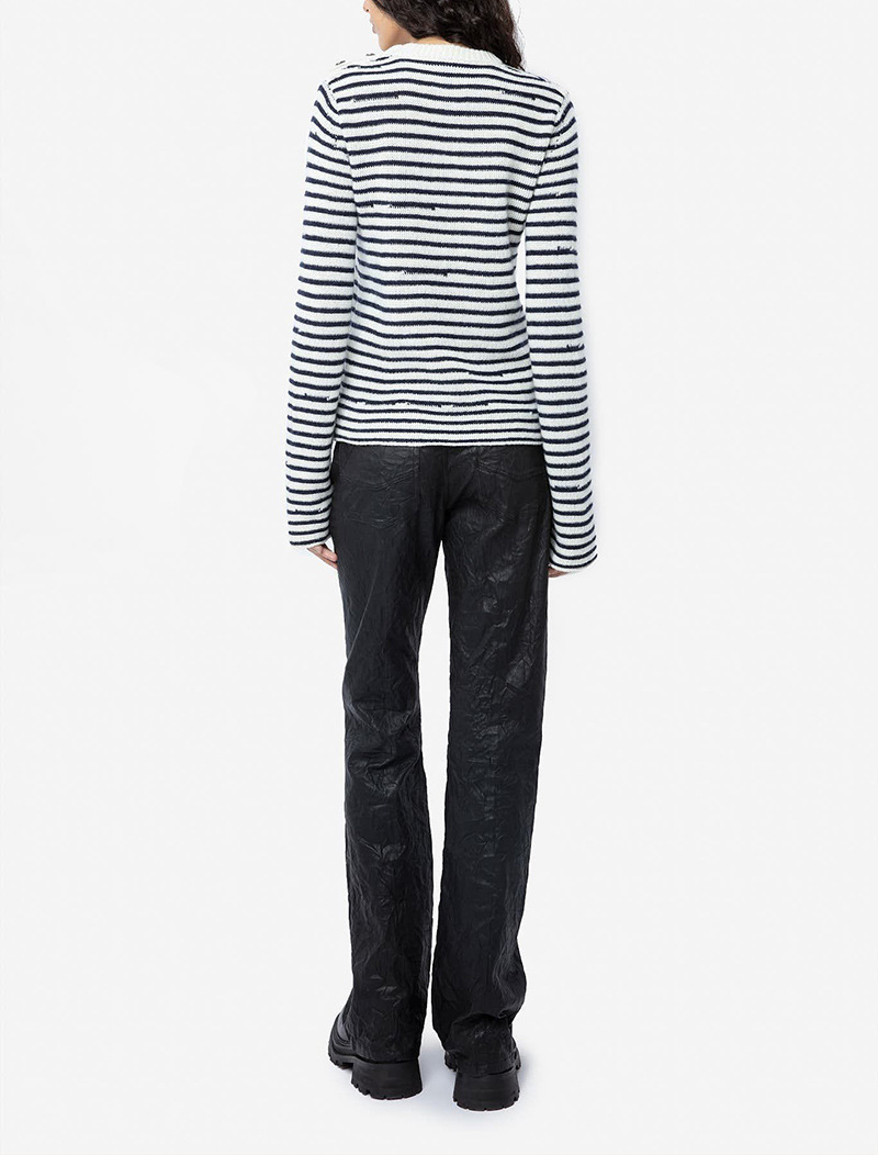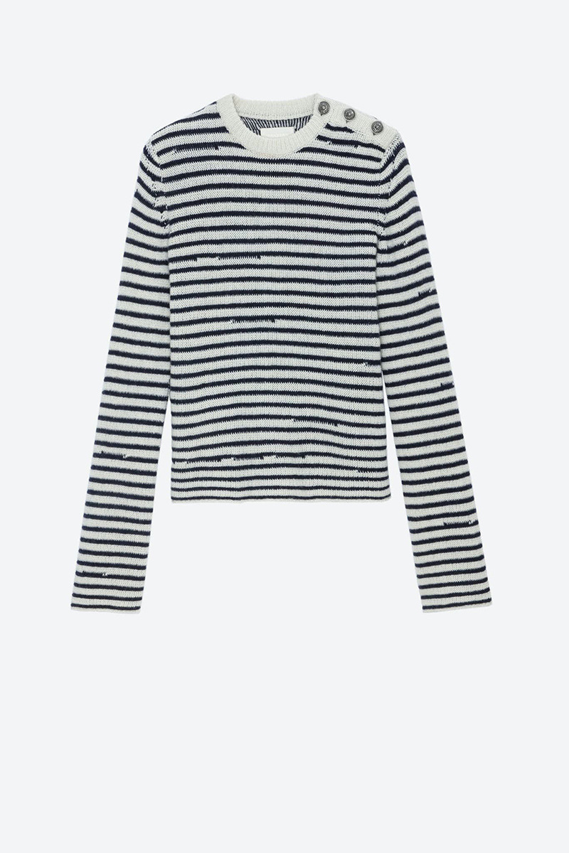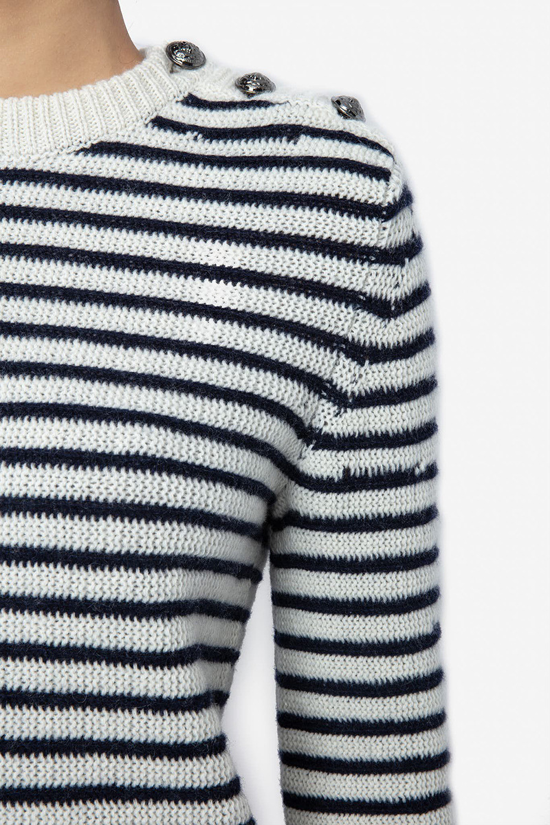 | nameOriginal | 23 Winter new French niche ZV striped slim button 100 cashmere sweater women's sweater |
