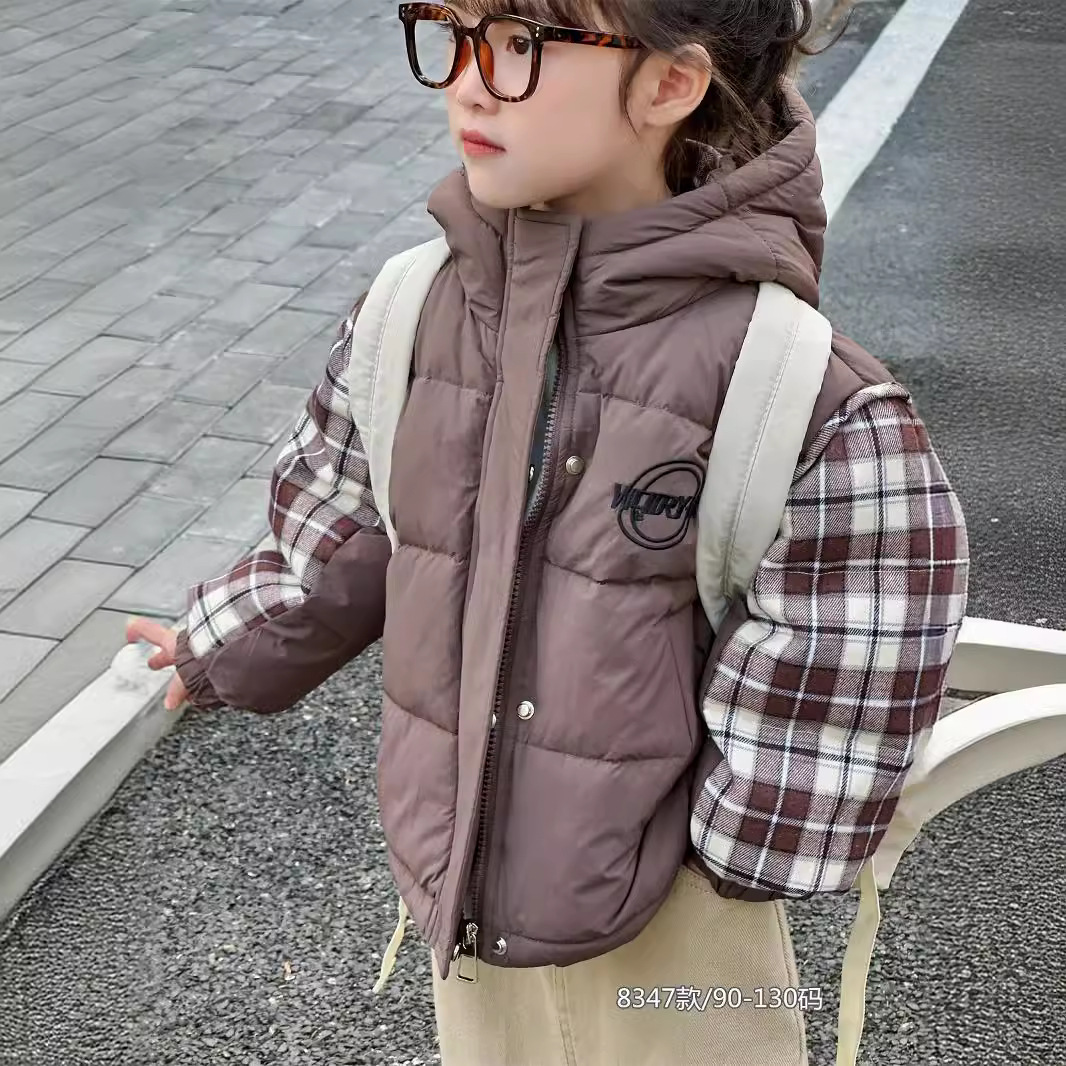 | nameOriginal | 23 winter New Zhimai bear 8347 boys and girls plaid stitching short down jacket 90-130 |