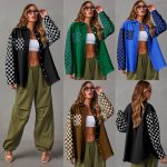 23 years of Europe and the United States cross-border autumn new fashion casual loose check contrast color rough edge denim coat women’s 32132