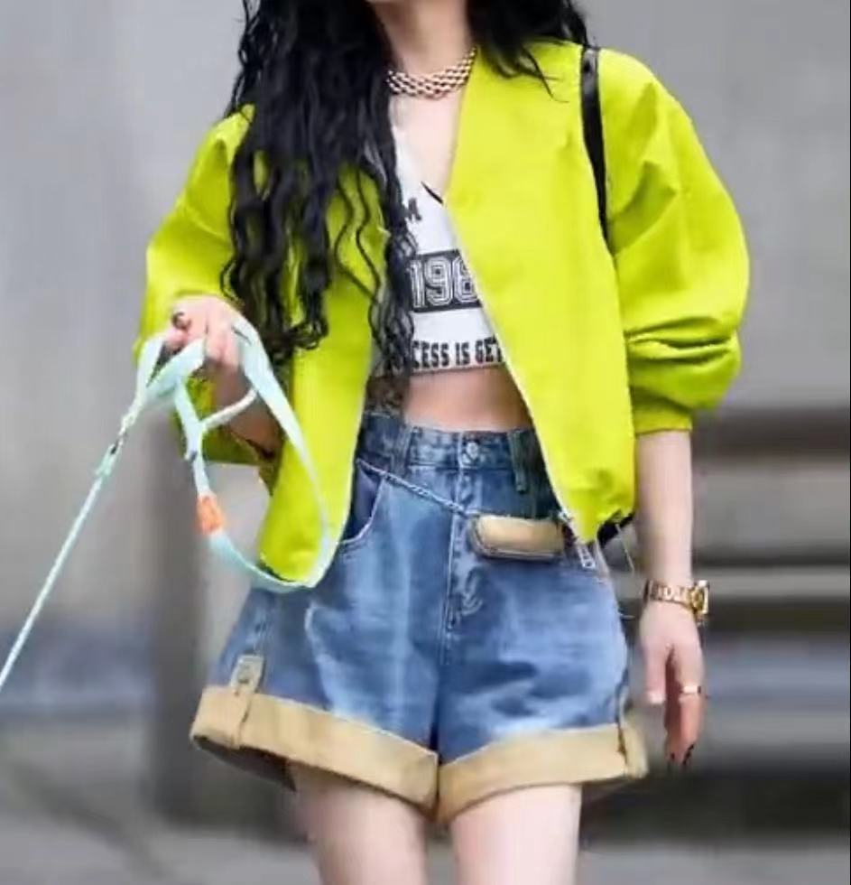 | nameOriginal | 23082 solid color short baseball jacket women's long-sleeved casual loose jacket trendy brand shorts niche top |
