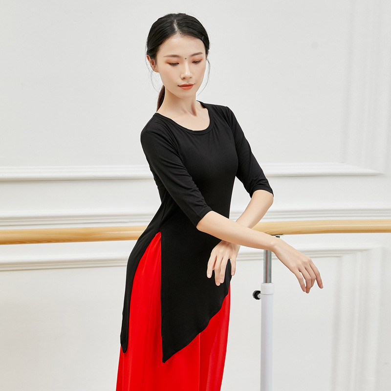 230g modal dance practice suit mid-sleeve modern dance top women’s adult oblique angle classical dance Latin dance suit