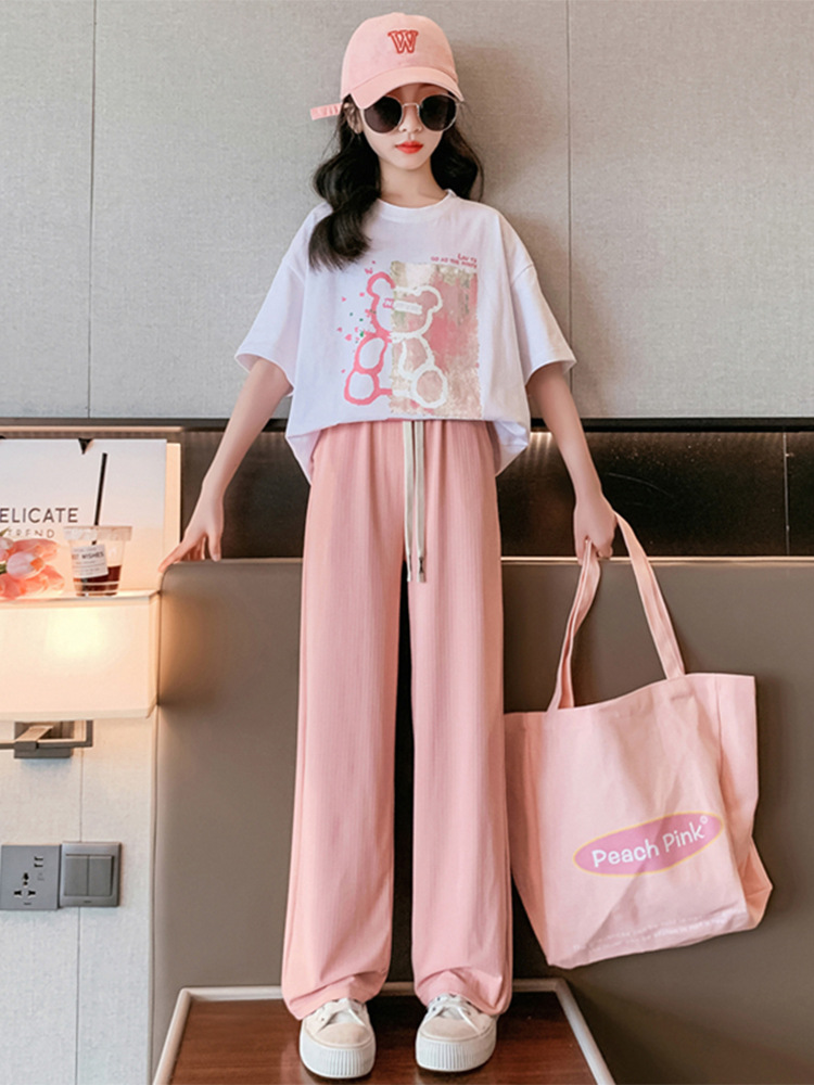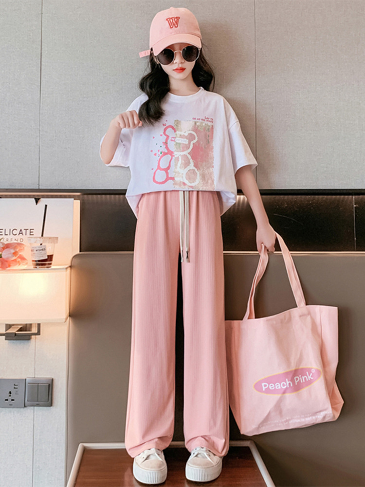 | nameOriginal | 230g Pearl Double Yarn Girls Summer Short-sleeved suit 2024 New Casual Middle and Big Children's Dopamine Two-piece Set |