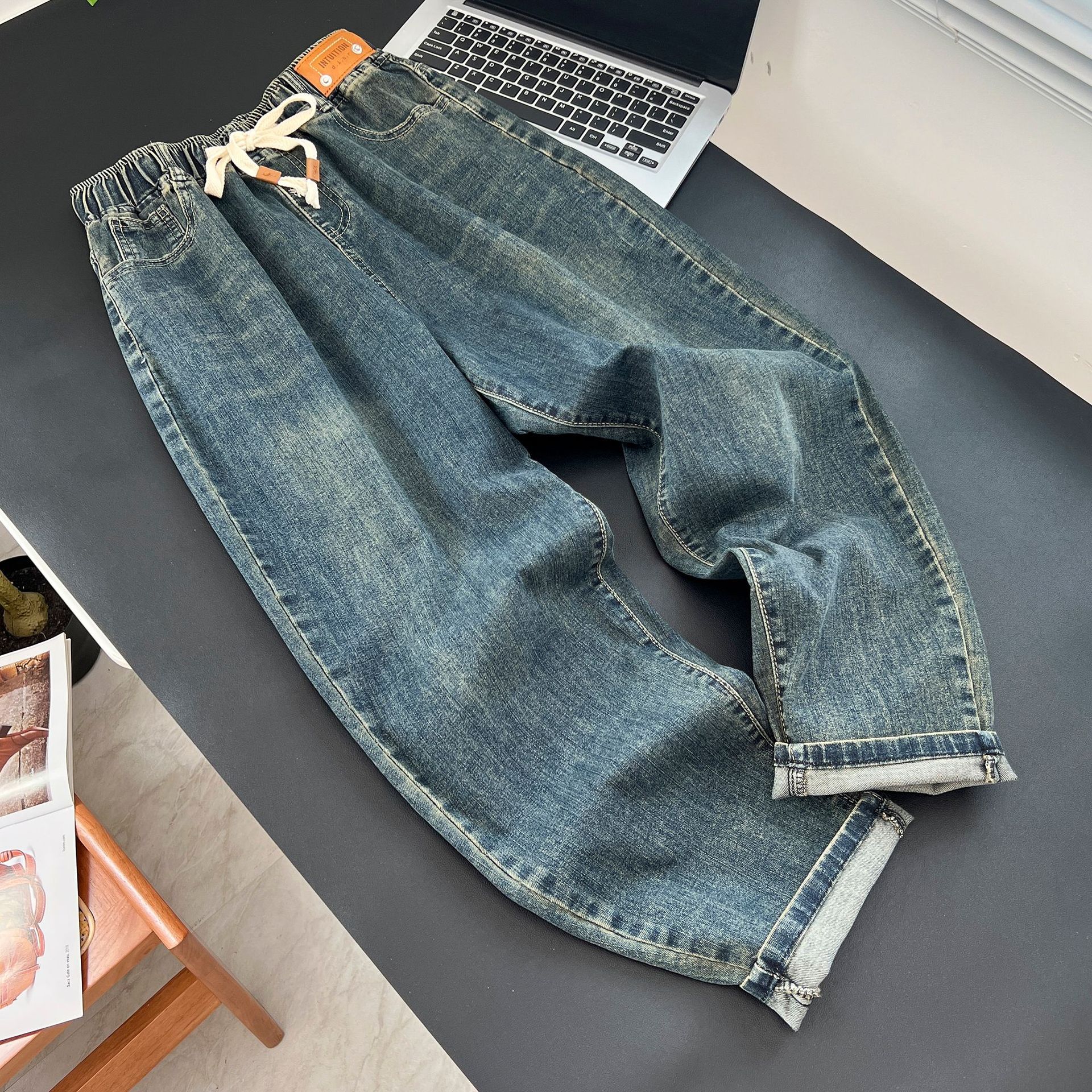| nameOriginal | 230kg fat sister slimming casual drawstring Denim harem pants plus size women's autumn stretch radish pants 0140 |