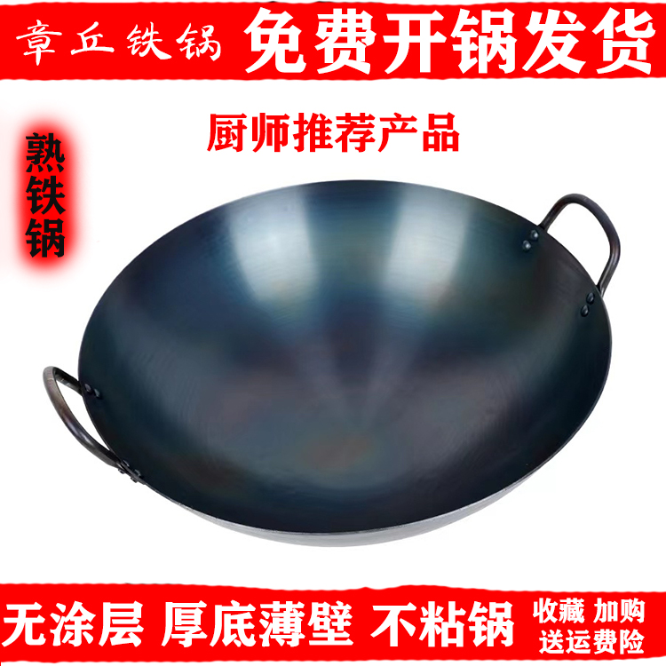 23N Old-fashioned Large Iron Wok Wok Traditional Round Bottom Kitchen Firewood Commercial Old-fashioned Uncoated Double-ear Cooked Iron Wok