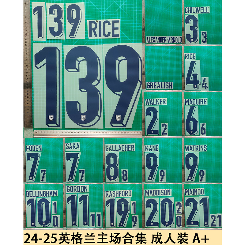 24-25 England Home Group Adult Dress A Jersey Number Letter Stamping Number Heat Transfer Map Ball