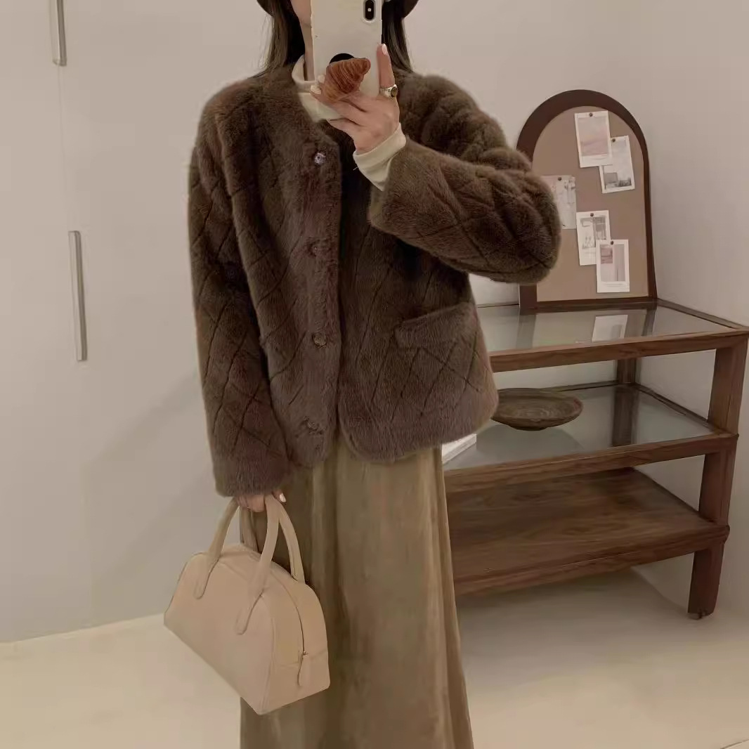 24 Autumn and Winter Eco-friendly Fur Imitation Fur Jacket Imitation Mink Hair Women’s Monochrome Milan Mink Fur One