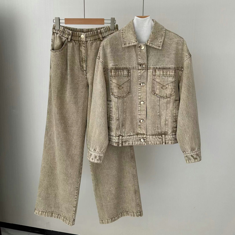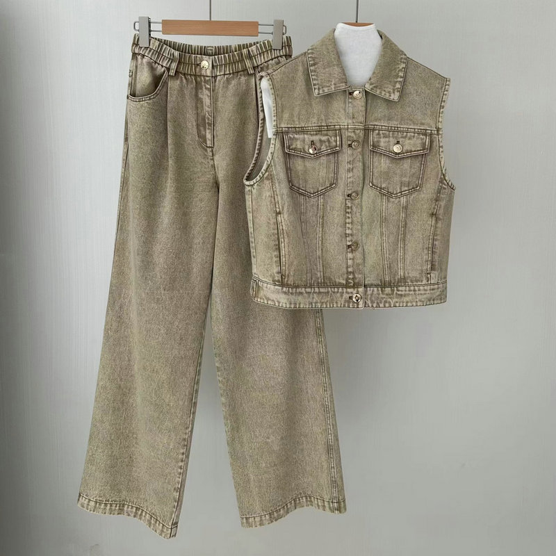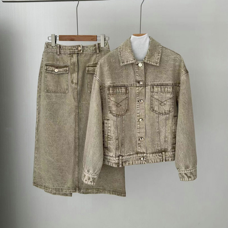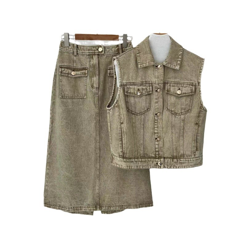 24 Autumn and Winter New BC Style Denim Four-piece Set High Quality Xinjiang Coat Vest Trousers Long Skirt Women