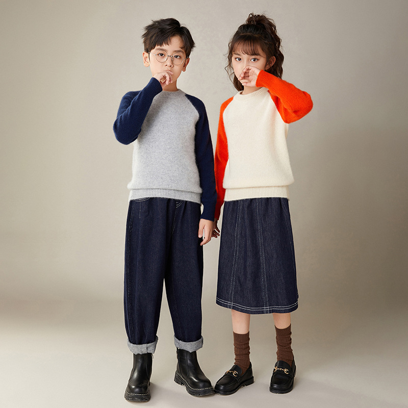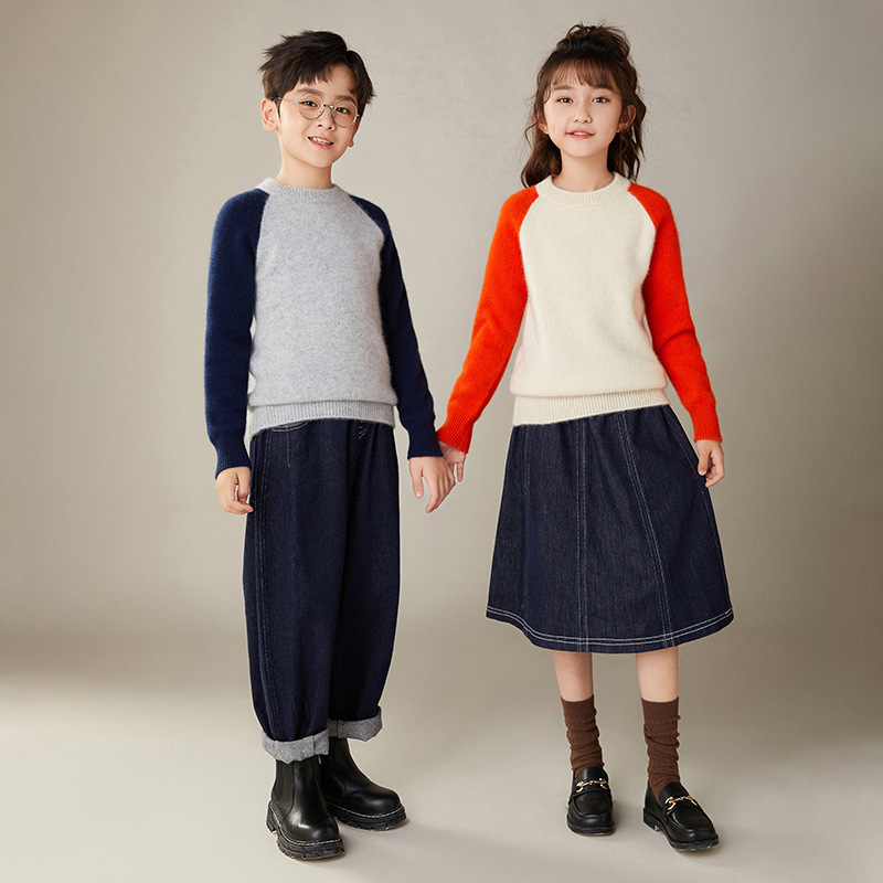 | nameOriginal | 24 autumn and winter new children's color matching round neck sweater women's children's clothing boys bottoming sweater thickened warm jacket |